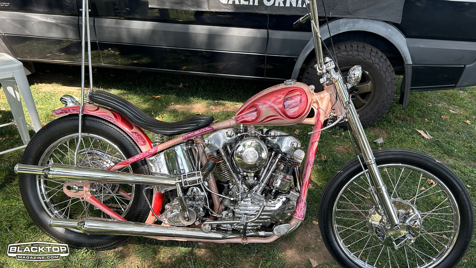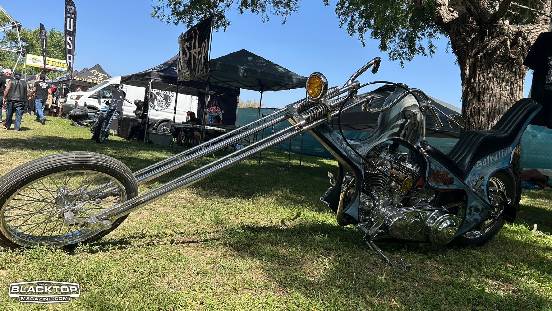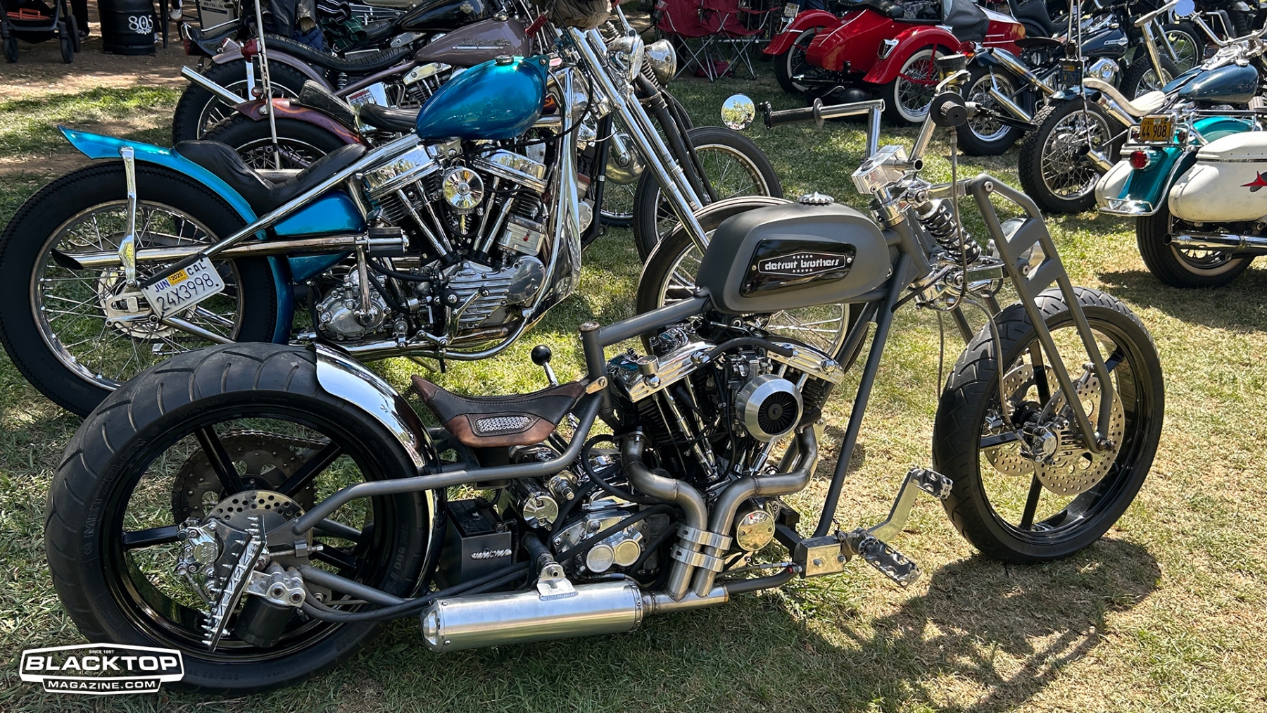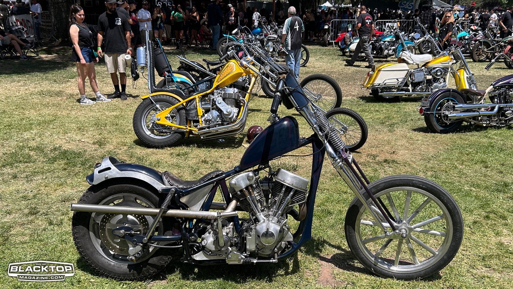Traditional choppers held court with reverent nods to timeless machines: daredevil Knuckleheads, Shovelheads, Panheads, and pre‑unit Triumphs rolled in, lovingly customized and polished allowing the sun to brighten your eyes. These aren’t museum pieces—they’re ridden, lived with, bared in their beauty.
