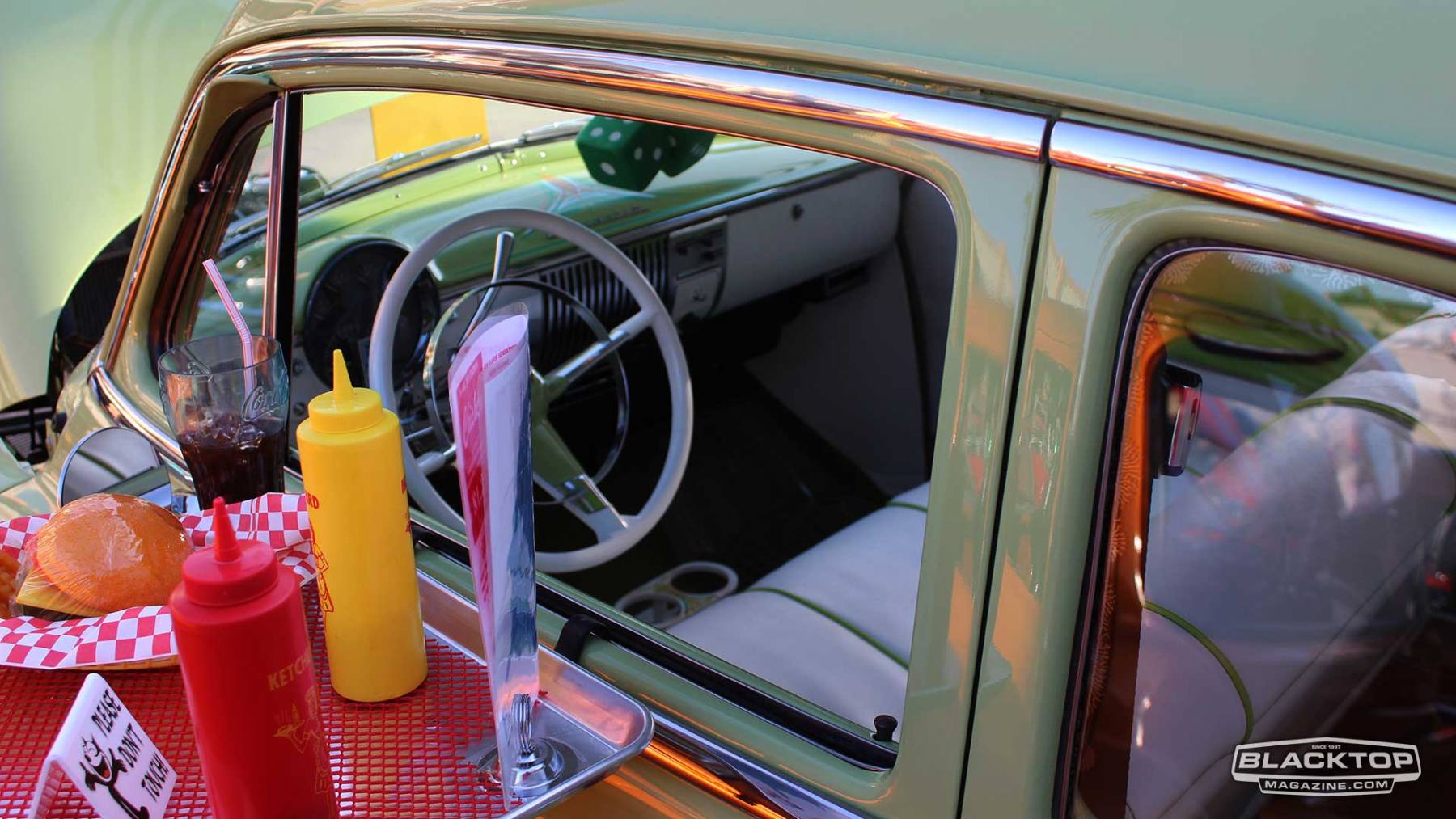 Cambra Speed Shop was there as one of the title sponsors. They brought out Mark’s ’56 Ford F100 that they recently finished the final assembly on. Also in their booth was a project they did a while back, Todd’s Grey on Grey ’55 Chevy. Talking with Todd about the car, he wanted to paint it battleship grey after retiring from the Navy as a Commander, but his wife said NO WAY! So together they poured over different grey’s that would showcase the car as a cool resto-mod.