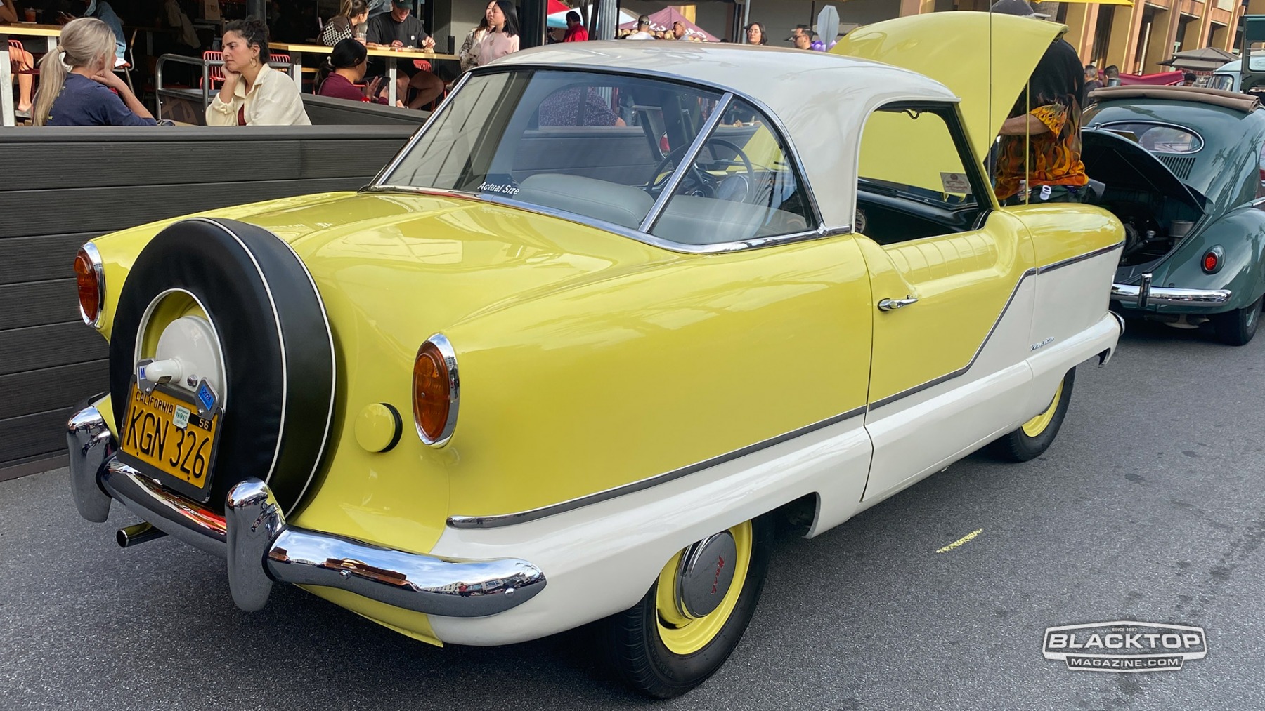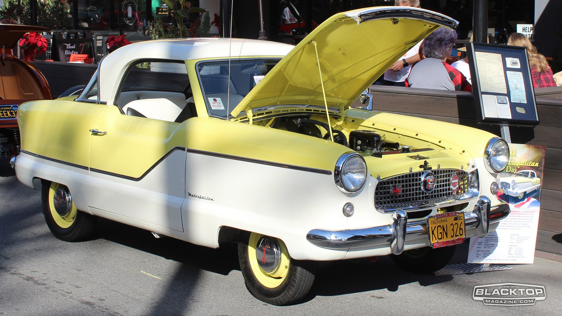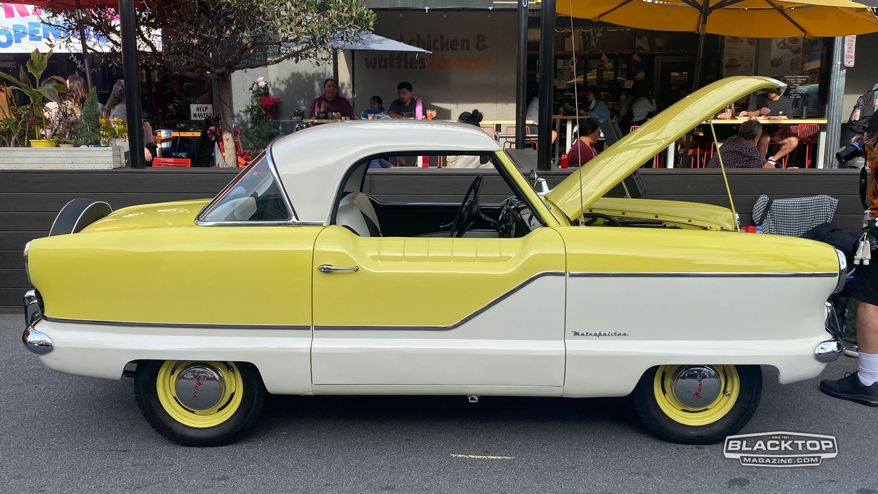 I got a chance to talk to my friend Chris about her really neat yellow and white ’56 Nash Metropolitan. Out of a whim, she bought the car as she was nearing retirement and wanted something to do. Not a car person at all, she grabbed on to the car, found a local chapter of the Metropolitan Club and learned about what she got and what she needed to restore it. And it is a beauty. I learned so much after talking for about 20 minutes. One thing was that in order to get in the trunk, there was a lock on the middle of the top of the back seat. No trunk lid from outside the vehicle, you had to squeeze in and retrieve anything you had in the trunk from behind the back seat. WHACKY I tell you! But a fun car and she has made a bunch of new friends with it. Go get em Chris!