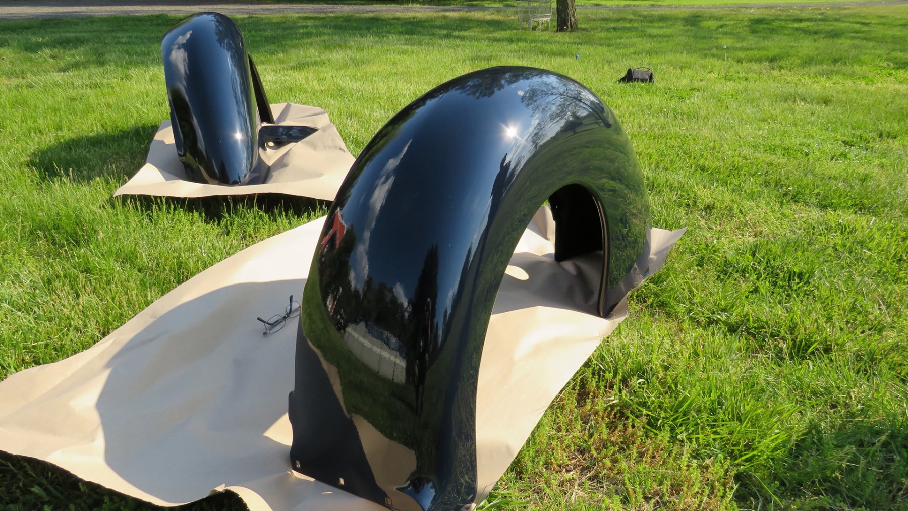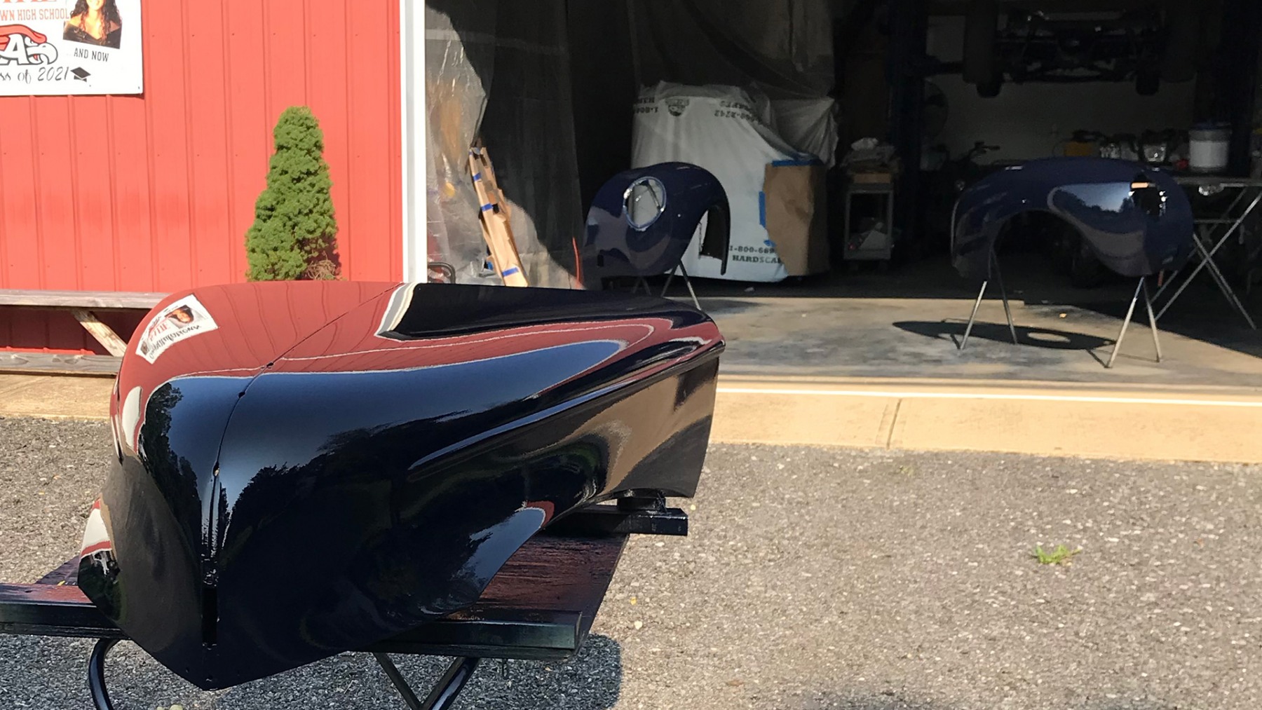 The last time we checked in, he had the body all sanded and ready for paint. Admitedly Ed tells us that as hobbyists there were some mistakes, although easily remedied. They had challenges with the paint at first. It has been a while since Ed had painted and the new paints from PPG took a bit of getting used to. All and all it turned out great. We find the back story of a young guy working with his dad and grandfather in the garage. Those little blems will only be a reminder to Garrett of the great times working in the garage with them. That will bring him a lifetime of pride that is much more valuable then sending it off to have someone else paint it or even build it for you.