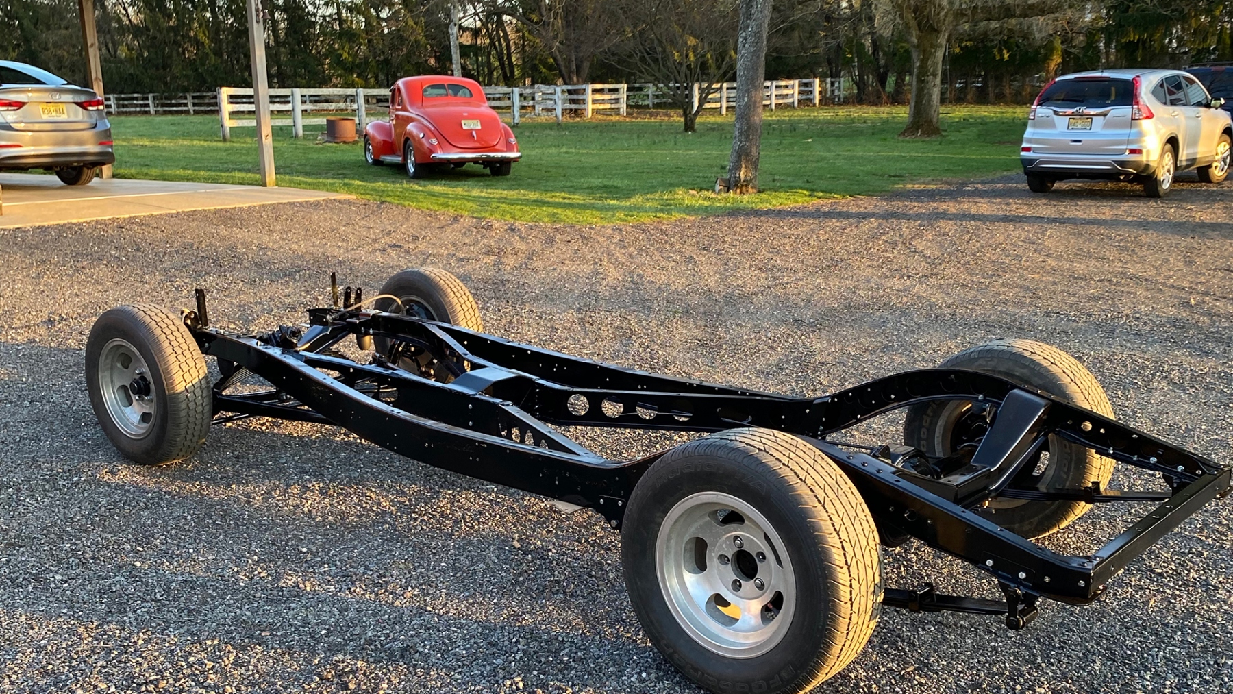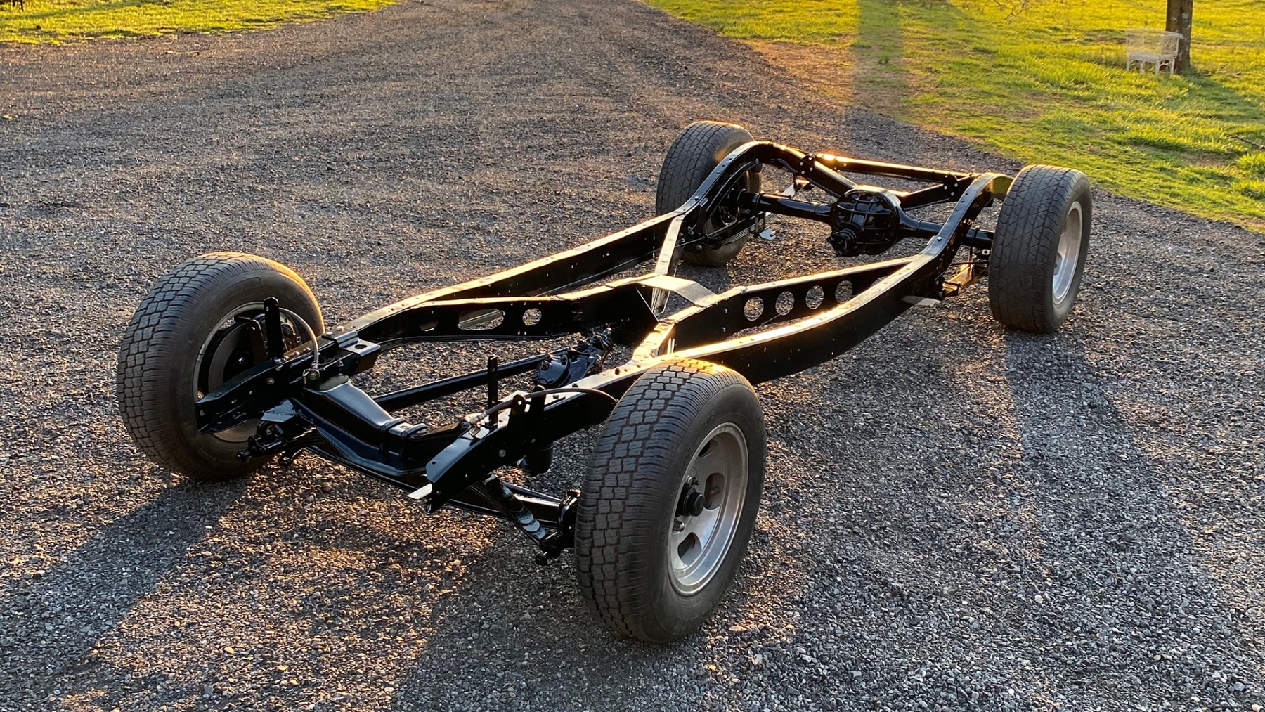 Even during this pandemic it sure seems time is just flying by. Garrett Baldwin has finished up the frame prep. He needed to complete the welding of the tacked-in cross member. Then he jumped on some suspension stuff. He then prepped and sprayed it a nice sturdy coat of black.