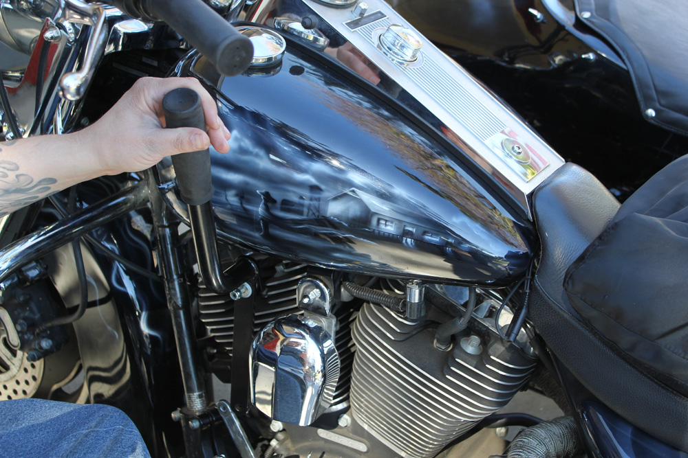 We thought we’d give it a run through the paces and install it on Billy’s sidecar rig. This could be a great solution for people who are challenged with moving their legs with shifting.