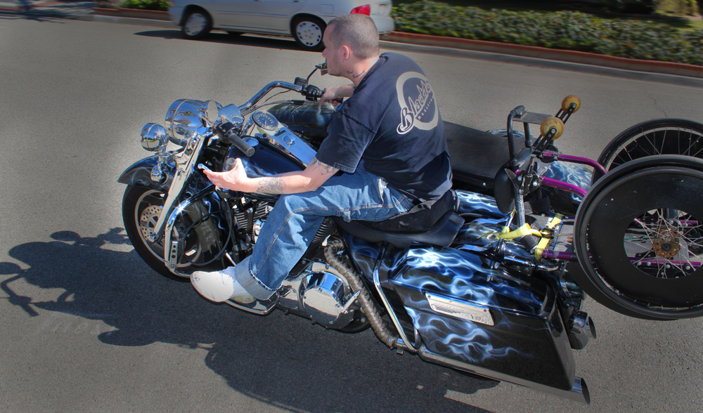 On the test ride Billy roared up and down the street and around the block. If you haven’t ridden a sidecar hack, you don’t lean it into the turns for obvious reasons, so you have to actually turn the handlebars. This was challenging while having a hand on the Jockey Shift, shifting through a turn. A bit getting used to and we suggest riding the bike in a safe area for a while to get used to it and get better at judging when you will need to shift and possibly shift earlier or later than usual to avoid shifting while in turns. Billy mentioned you will need some good upper body strength for turning a 1000 lb HD Sidecar Rig with only one arm.