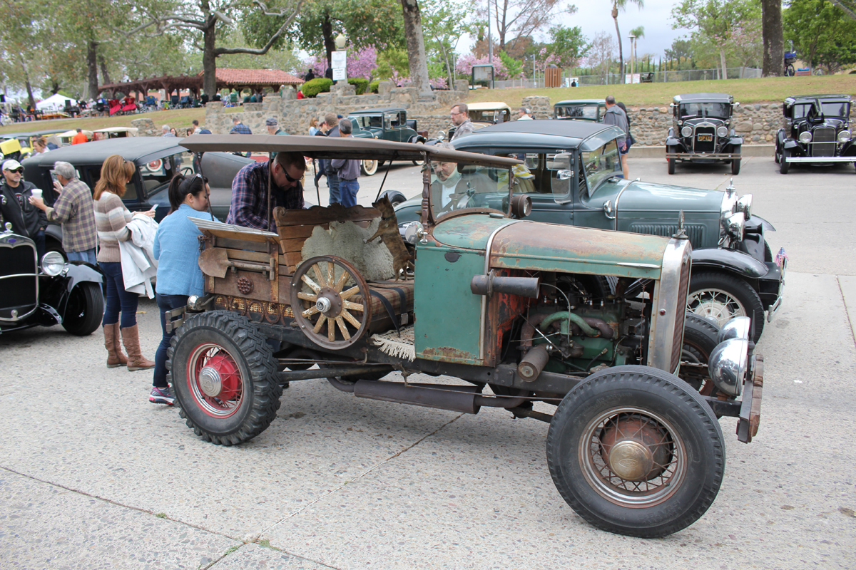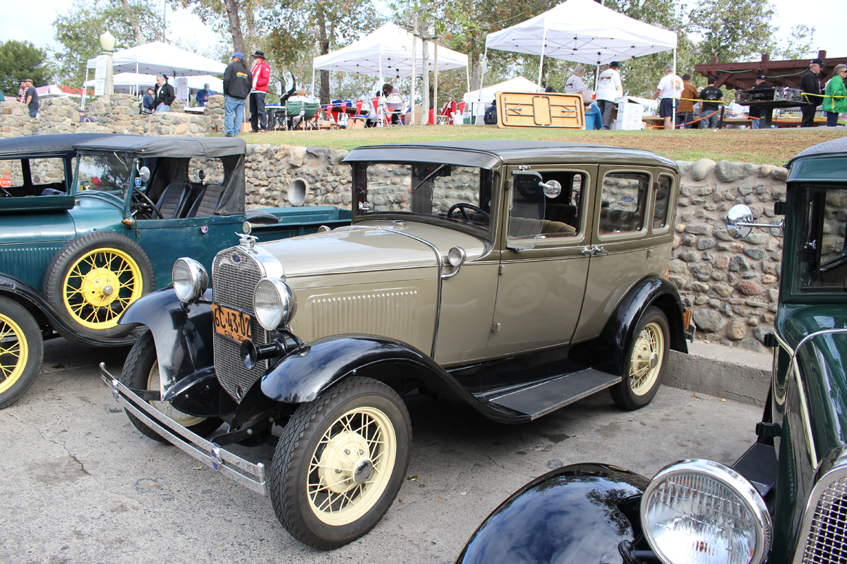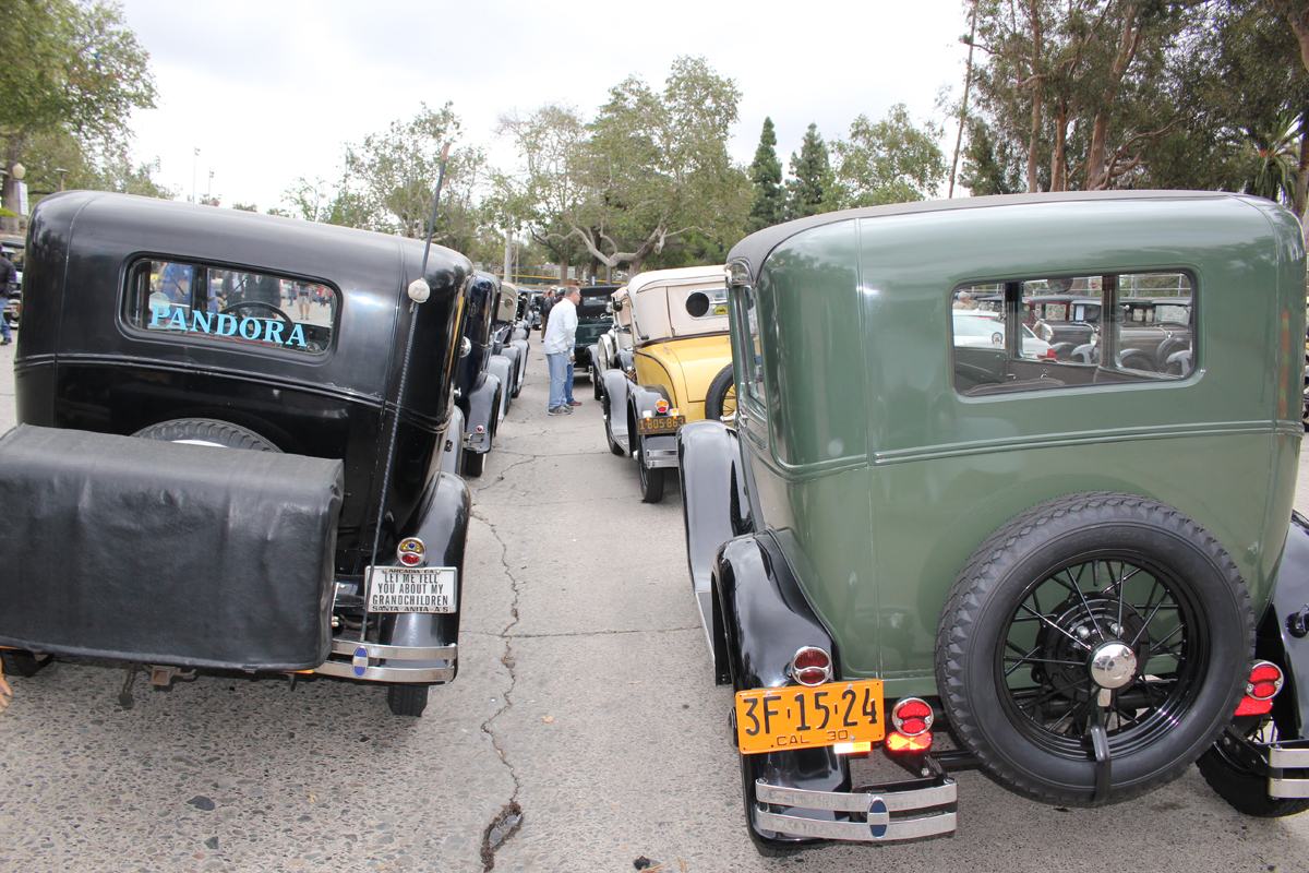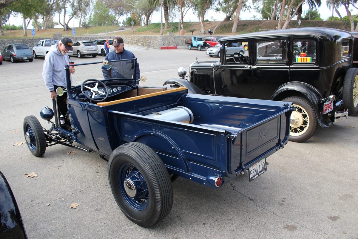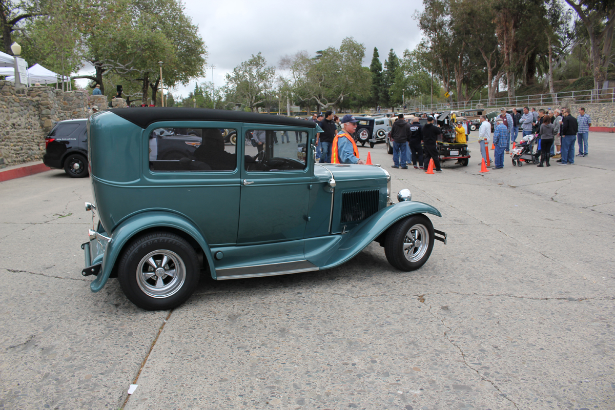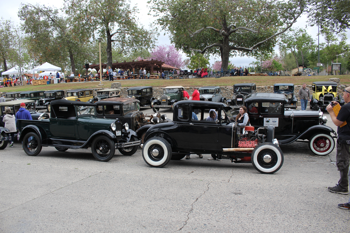 With nearly 300 Ford Model A’s on average appearing at Hart Park, this year a threat of rain brought out the die-hards. From roadsters to sedans, Hot Rods to Gennies, this show is a must-see for any early Ford or classic car enthusiast. The show is held at Hart Park, nearly 42 acres in the edge of Old Towne Orange, California’s largest historic district. The park was acquired by the city in 1933 and features a large picnic area, swimming pool, tot-lots and 2 lighted baseball fields. Parking is in a paved portion of the usually dry, Santiago Creek under the Glassell street bridge the parking turns into a bike trail that will take you towards the beach or up to the foothills. On a day like this with flash flood warnings, I found it brave for the cars to park in the “Orange Plunge”.