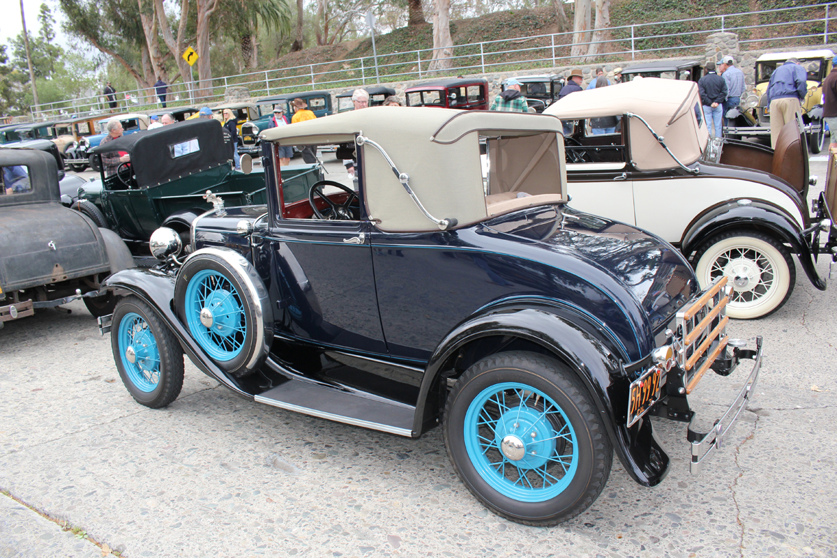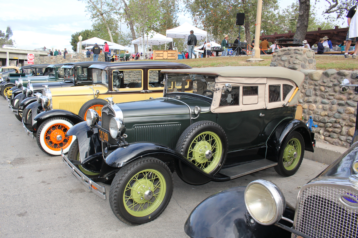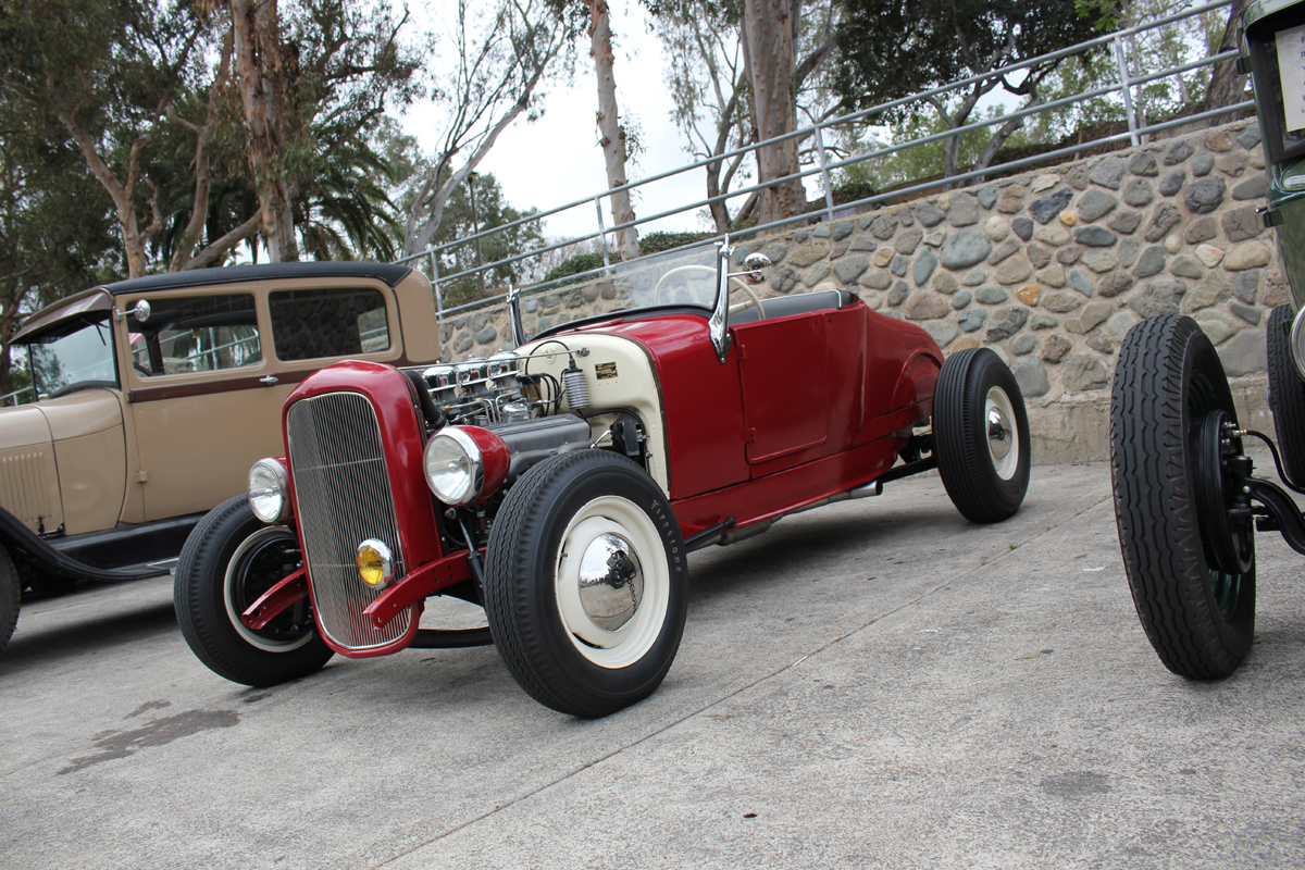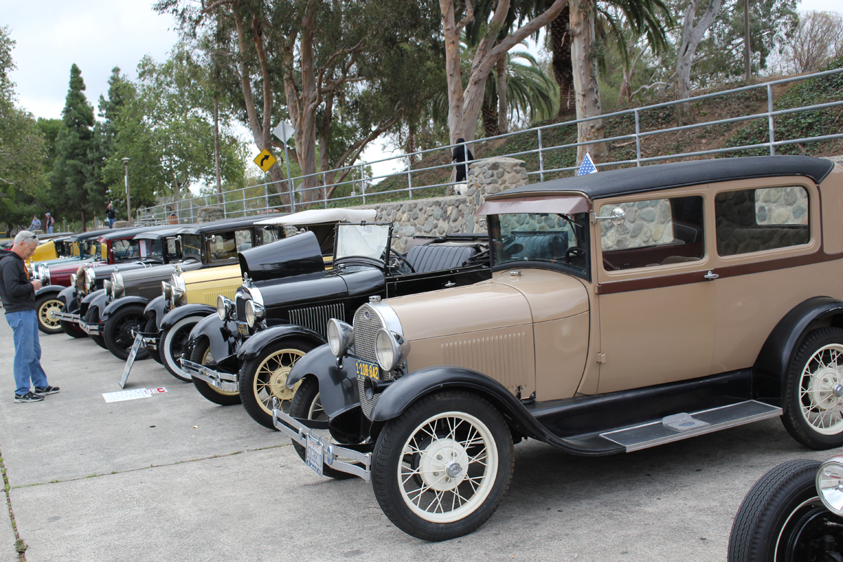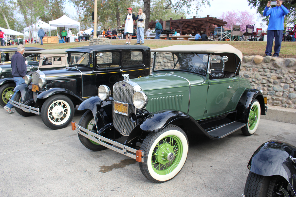 With nearly 300 Ford Model A’s on average appearing at Hart Park, this year a threat of rain brought out the die-hards. From roadsters to sedans, Hot Rods to Gennies, this show is a must-see for any early Ford or classic car enthusiast. The show is held at Hart Park, nearly 42 acres in the edge of Old Towne Orange, California’s largest historic district. The park was acquired by the city in 1933 and features a large picnic area, swimming pool, tot-lots and 2 lighted baseball fields. Parking is in a paved portion of the usually dry, Santiago Creek under the Glassell street bridge the parking turns into a bike trail that will take you towards the beach or up to the foothills. On a day like this with flash flood warnings, I found it brave for the cars to park in the “Orange Plunge”.