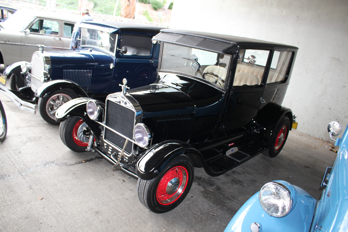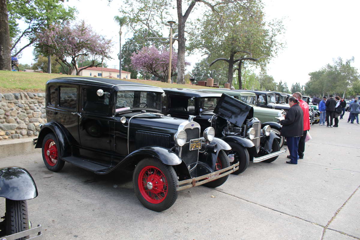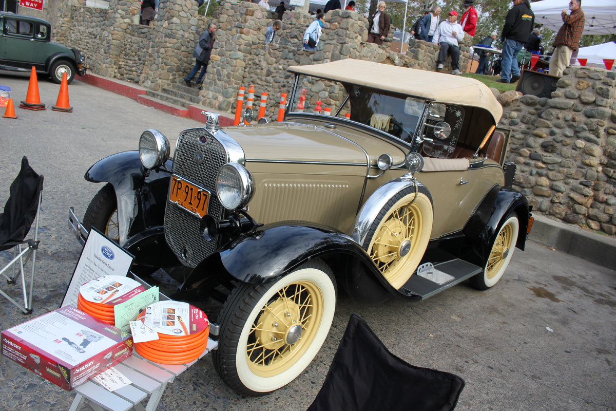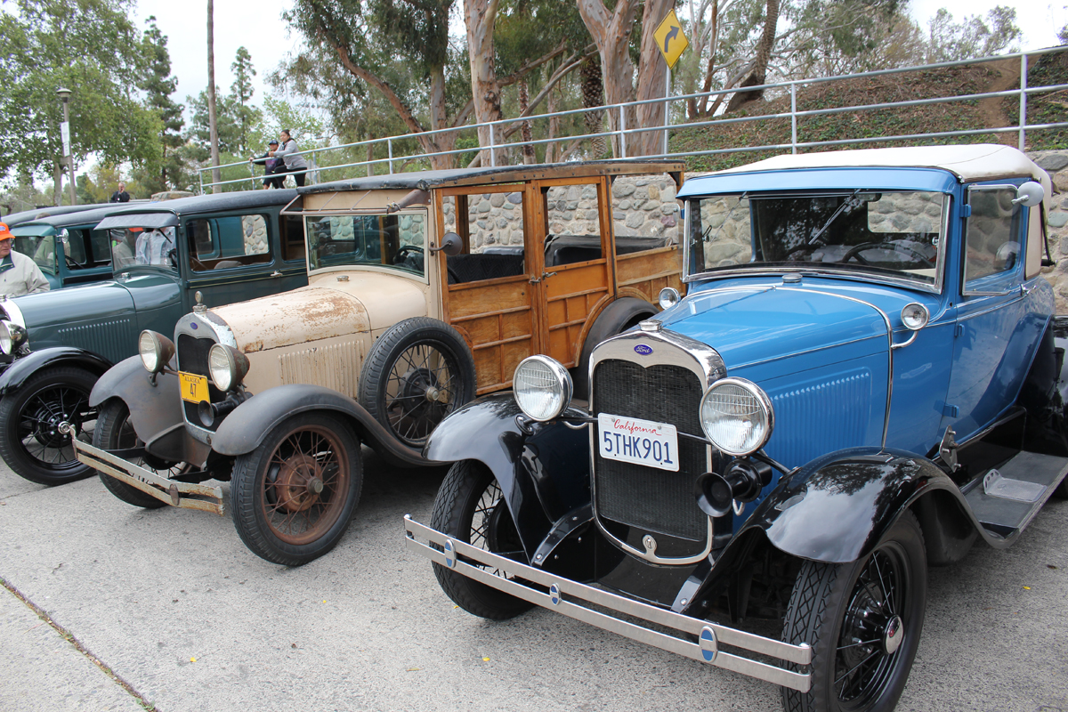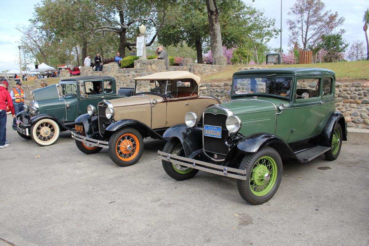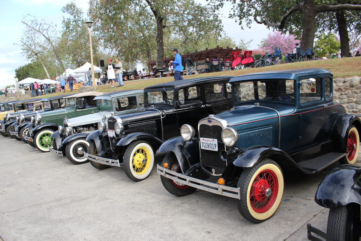 With nearly 300 Ford Model A’s on average appearing at Hart Park, this year a threat of rain brought out the die-hards. From roadsters to sedans, Hot Rods to Gennies, this show is a must-see for any early Ford or classic car enthusiast. The show is held at Hart Park, nearly 42 acres in the edge of Old Towne Orange, California’s largest historic district. The park was acquired by the city in 1933 and features a large picnic area, swimming pool, tot-lots and 2 lighted baseball fields. Parking is in a paved portion of the usually dry, Santiago Creek under the Glassell street bridge the parking turns into a bike trail that will take you towards the beach or up to the foothills. On a day like this with flash flood warnings, I found it brave for the cars to park in the “Orange Plunge”.