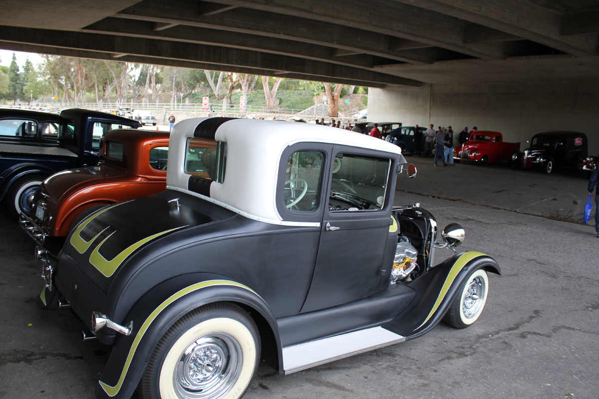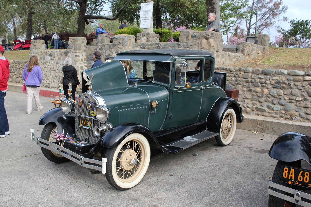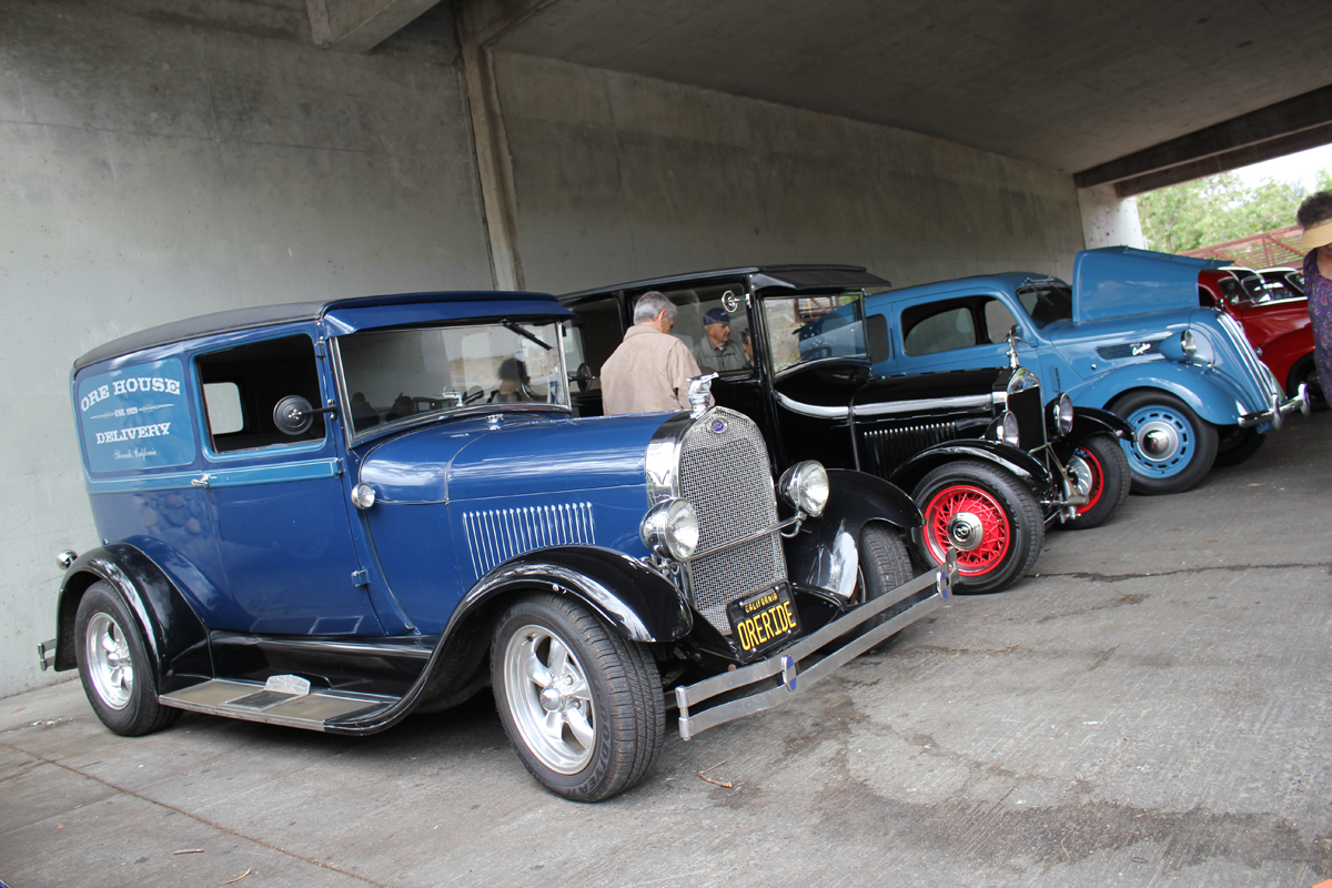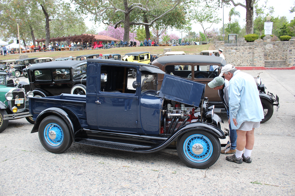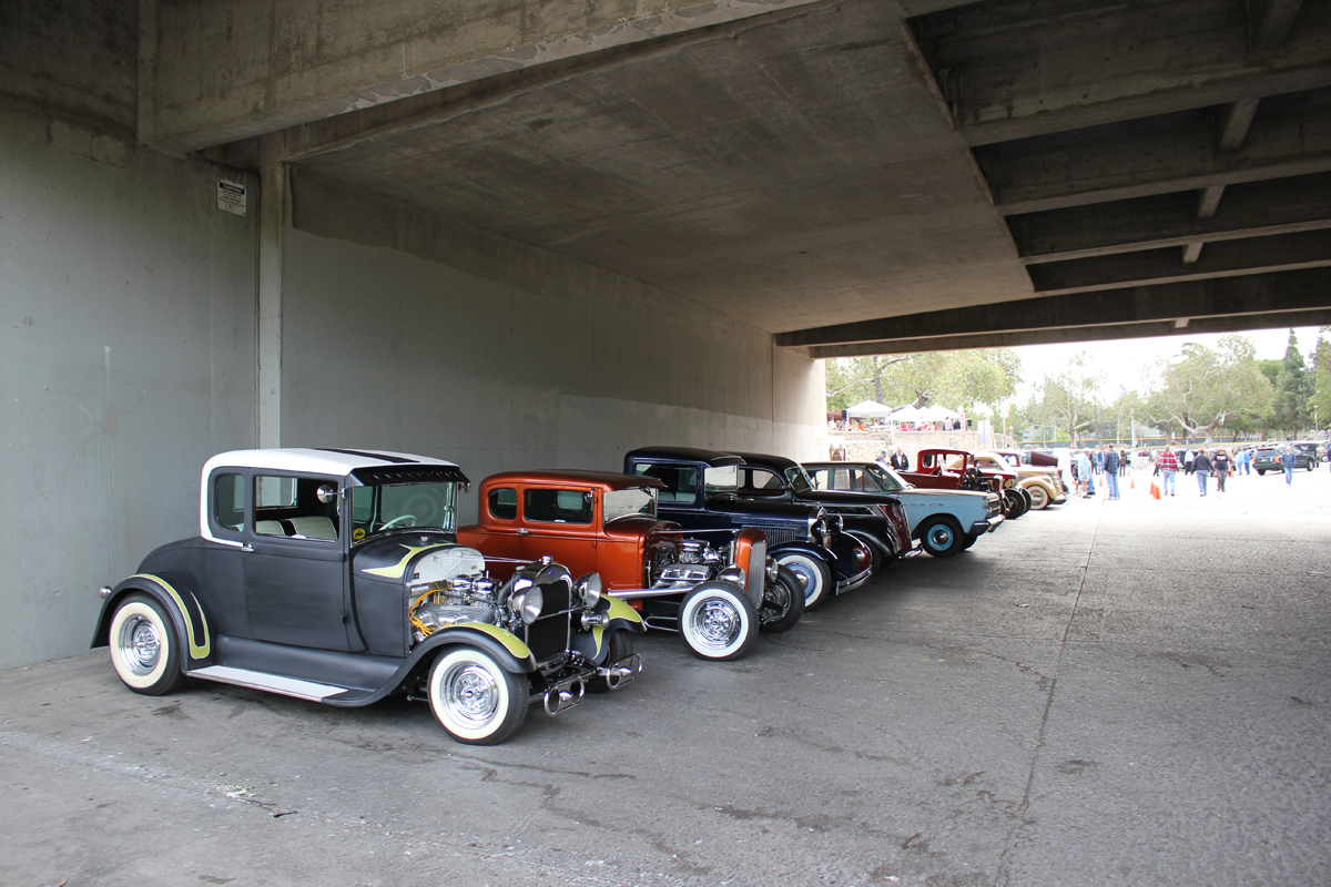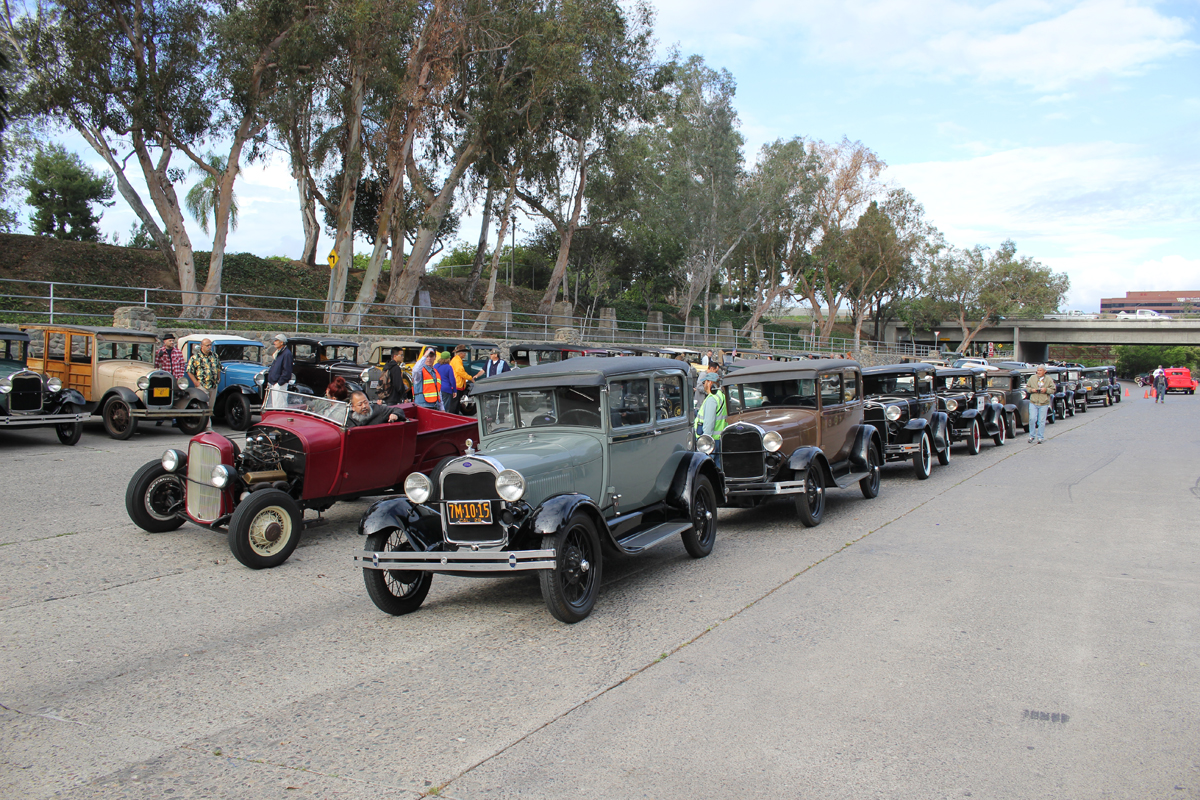 With nearly 300 Ford Model A’s on average appearing at Hart Park, this year a threat of rain brought out the die-hards. From roadsters to sedans, Hot Rods to Gennies, this show is a must-see for any early Ford or classic car enthusiast. The show is held at Hart Park, nearly 42 acres in the edge of Old Towne Orange, California’s largest historic district. The park was acquired by the city in 1933 and features a large picnic area, swimming pool, tot-lots and 2 lighted baseball fields. Parking is in a paved portion of the usually dry, Santiago Creek under the Glassell street bridge the parking turns into a bike trail that will take you towards the beach or up to the foothills. On a day like this with flash flood warnings, I found it brave for the cars to park in the “Orange Plunge”.