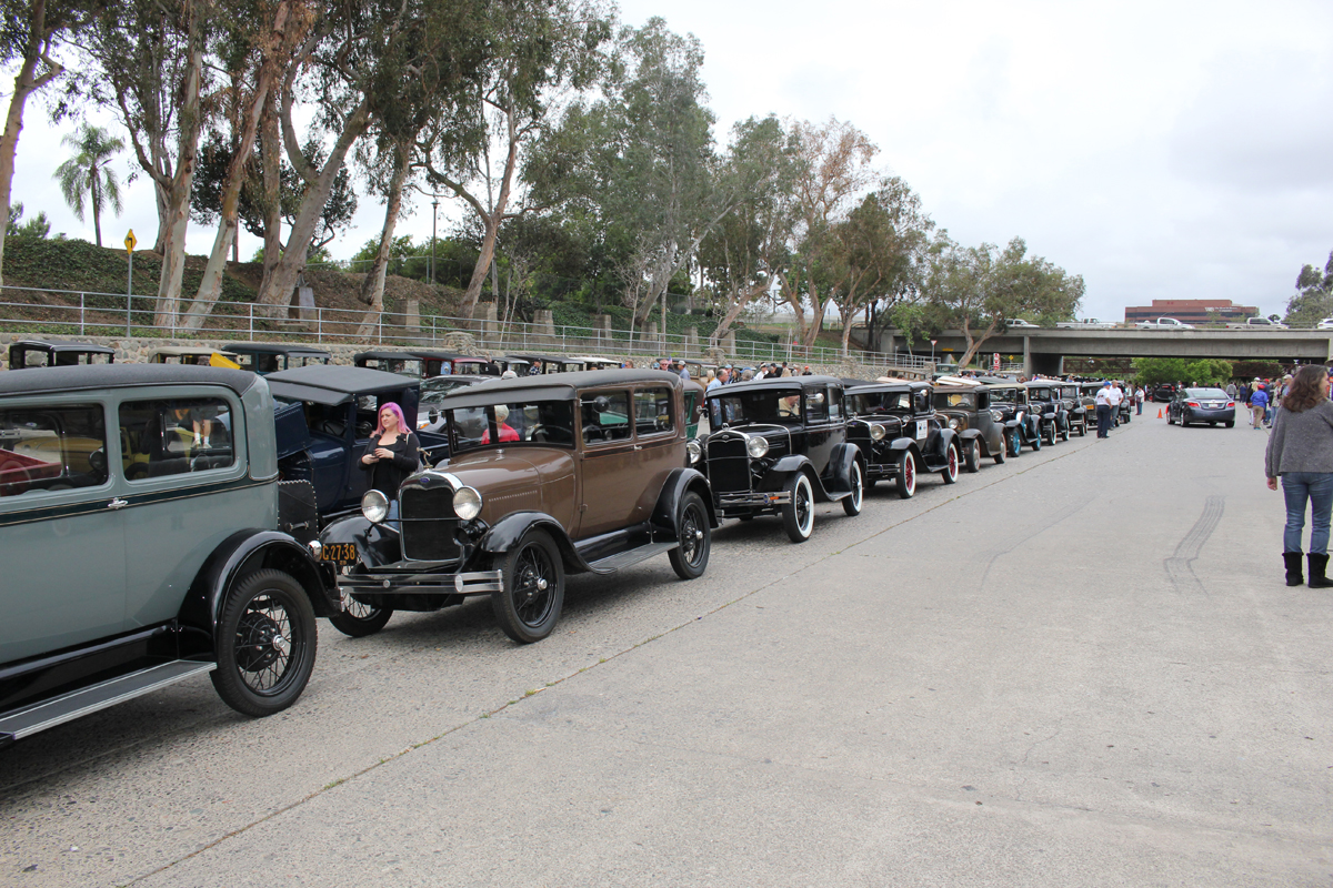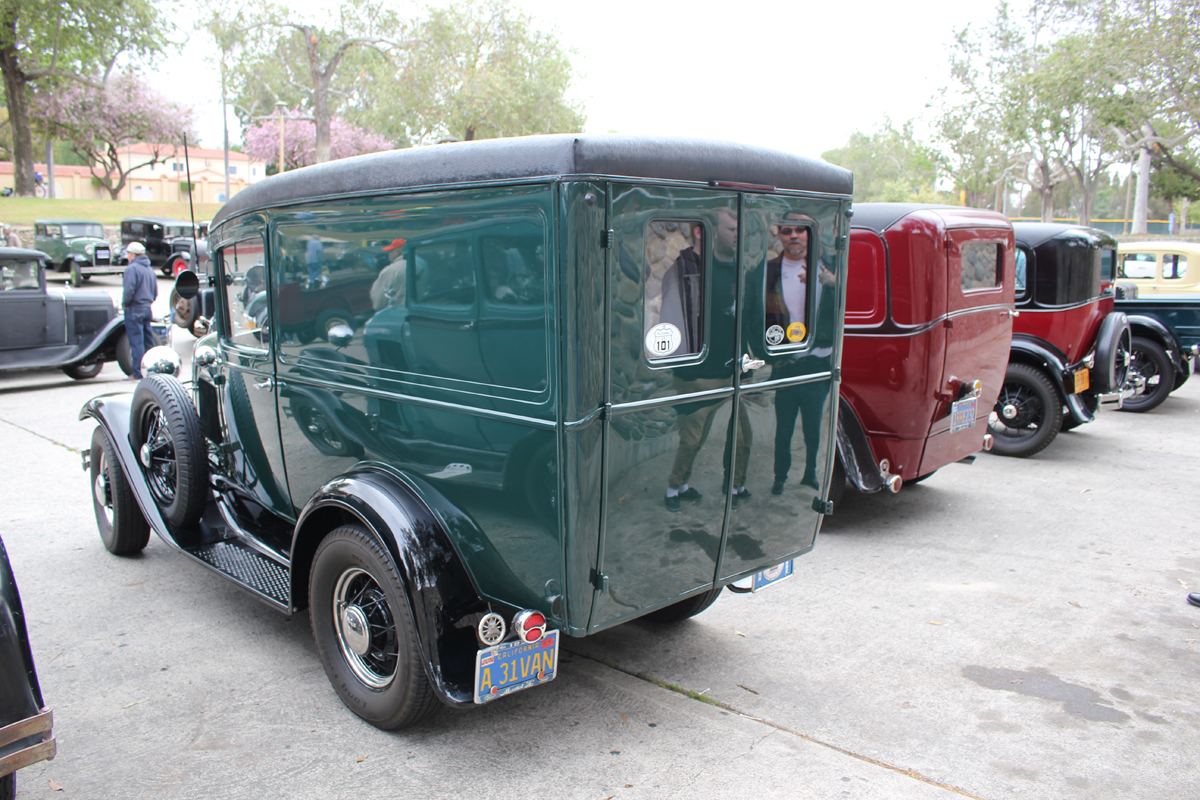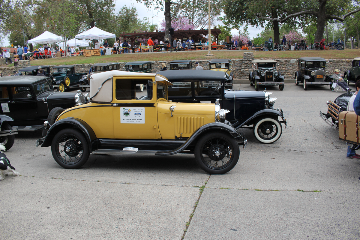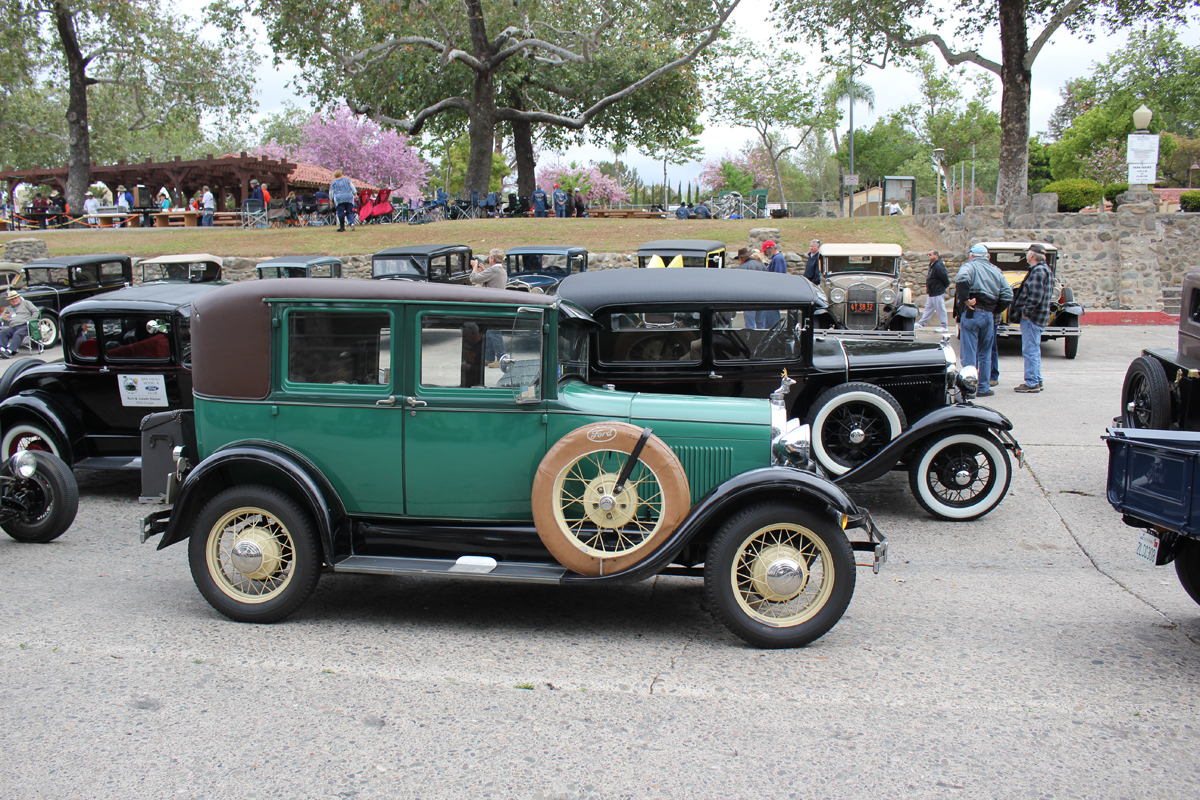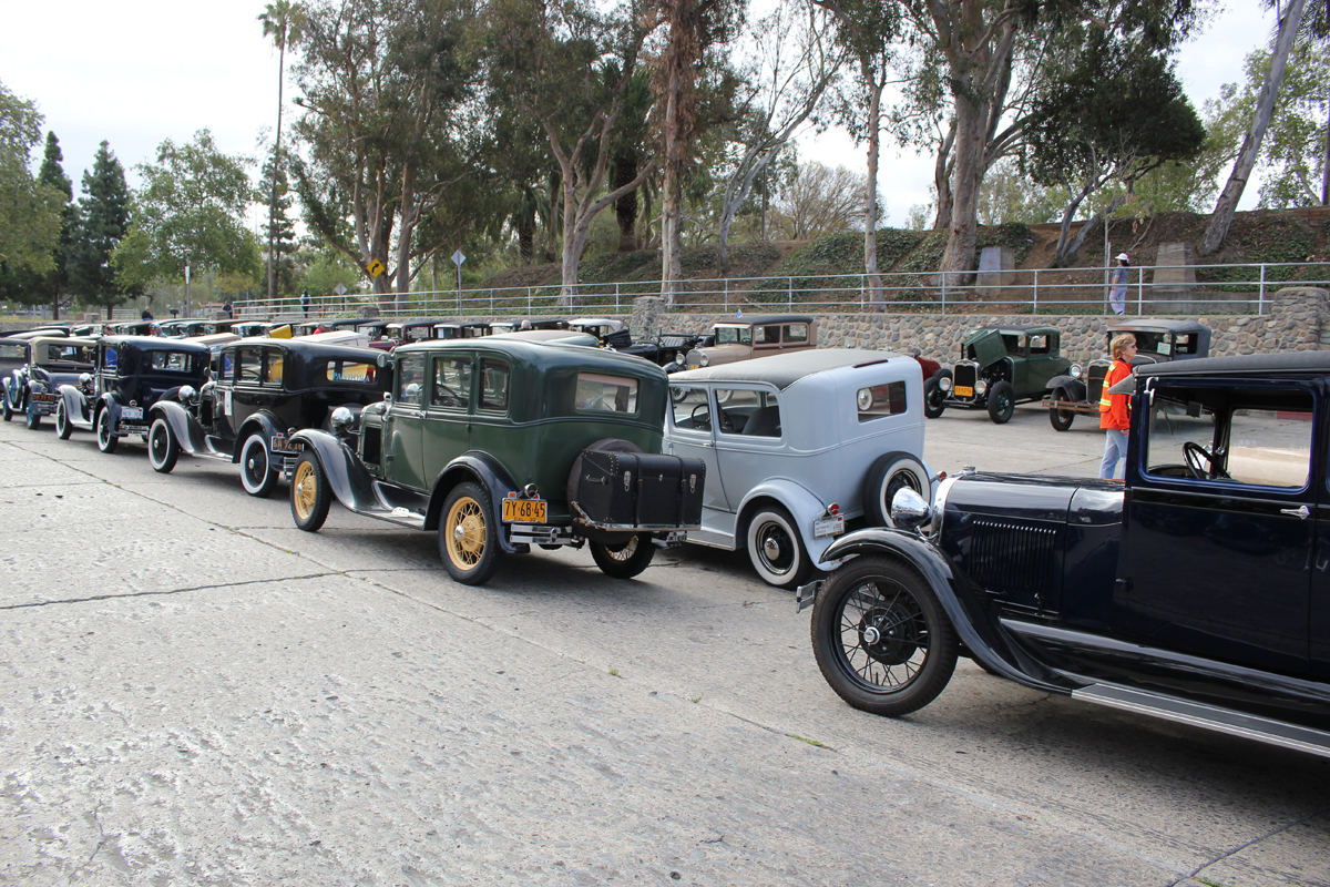 With nearly 300 Ford Model A’s on average appearing at Hart Park, this year a threat of rain brought out the die-hards. From roadsters to sedans, Hot Rods to Gennies, this show is a must-see for any early Ford or classic car enthusiast. The show is held at Hart Park, nearly 42 acres in the edge of Old Towne Orange, California’s largest historic district. The park was acquired by the city in 1933 and features a large picnic area, swimming pool, tot-lots and 2 lighted baseball fields. Parking is in a paved portion of the usually dry, Santiago Creek under the Glassell street bridge the parking turns into a bike trail that will take you towards the beach or up to the foothills. On a day like this with flash flood warnings, I found it brave for the cars to park in the “Orange Plunge”.