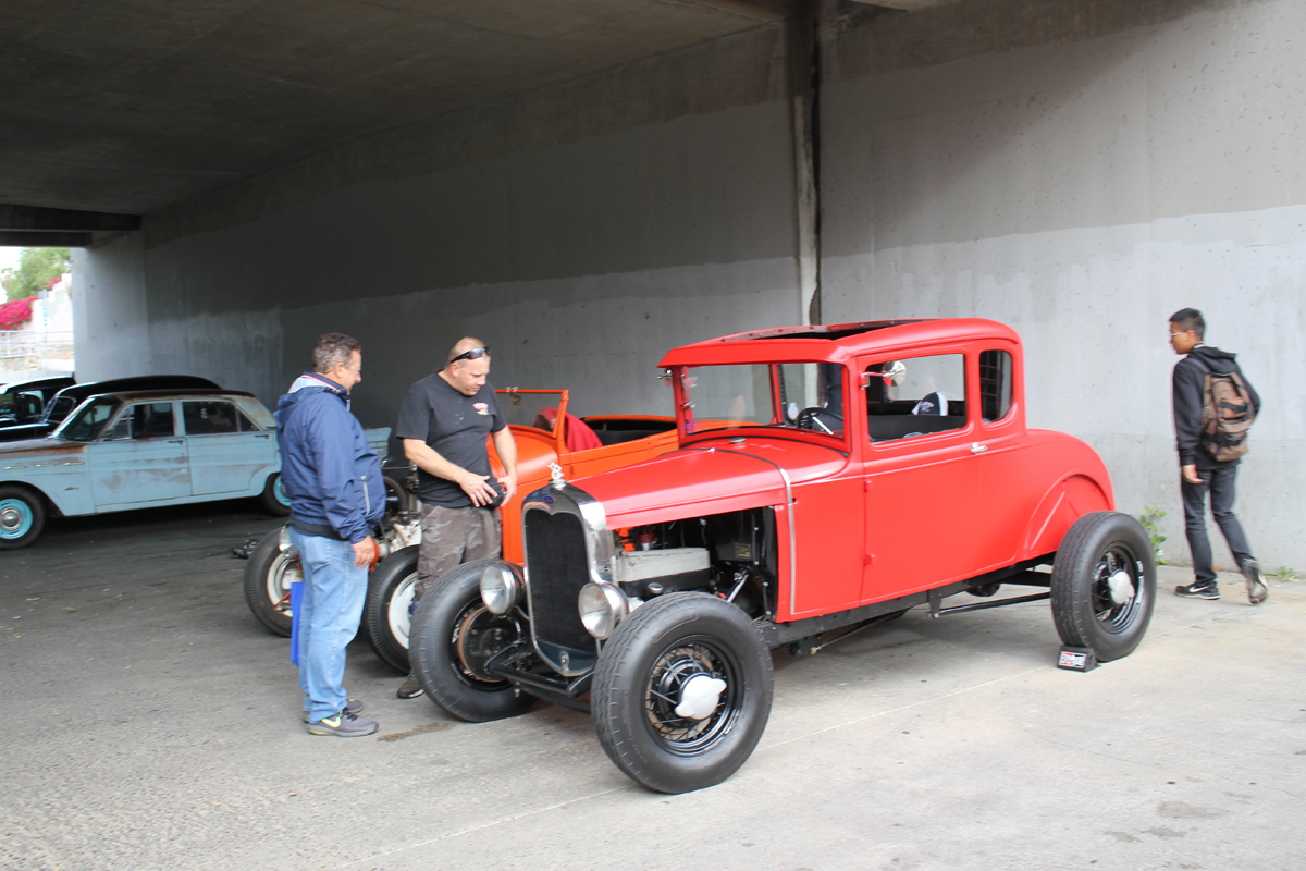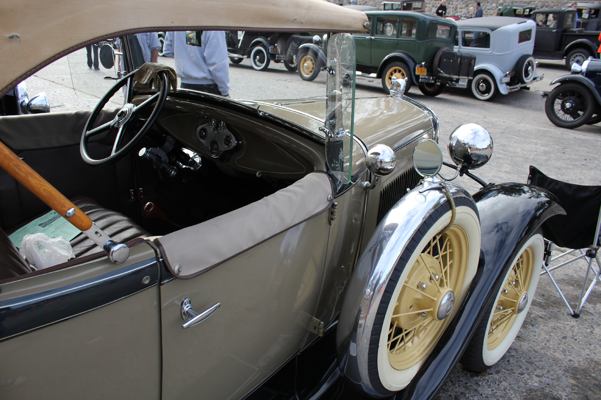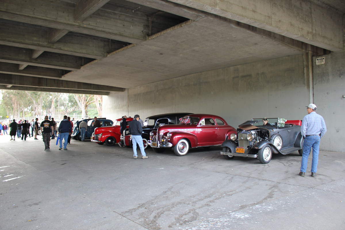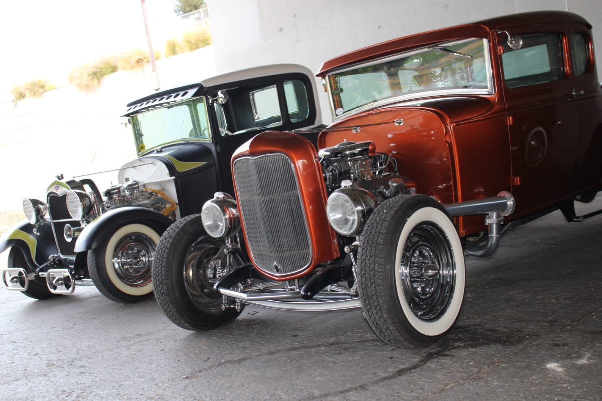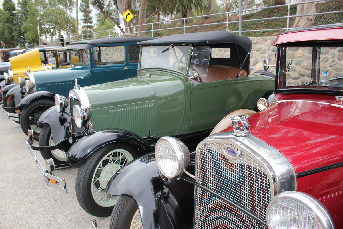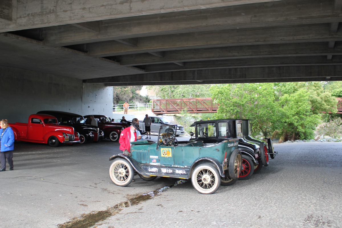 With nearly 300 Ford Model A’s on average appearing at Hart Park, this year a threat of rain brought out the die-hards. From roadsters to sedans, Hot Rods to Gennies, this show is a must-see for any early Ford or classic car enthusiast. The show is held at Hart Park, nearly 42 acres in the edge of Old Towne Orange, California’s largest historic district. The park was acquired by the city in 1933 and features a large picnic area, swimming pool, tot-lots and 2 lighted baseball fields. Parking is in a paved portion of the usually dry, Santiago Creek under the Glassell street bridge the parking turns into a bike trail that will take you towards the beach or up to the foothills. On a day like this with flash flood warnings, I found it brave for the cars to park in the “Orange Plunge”.
