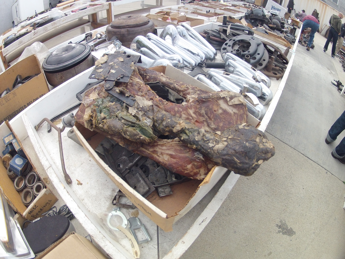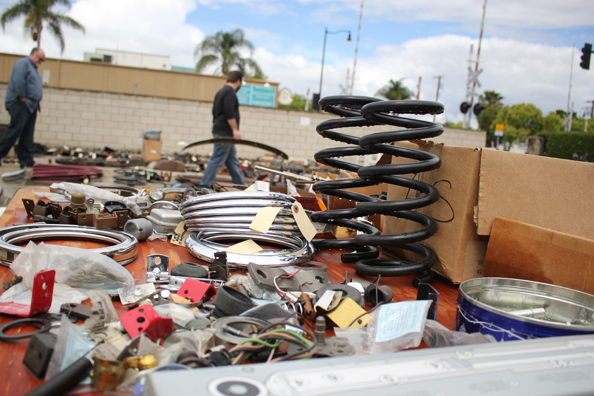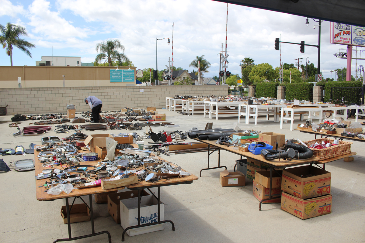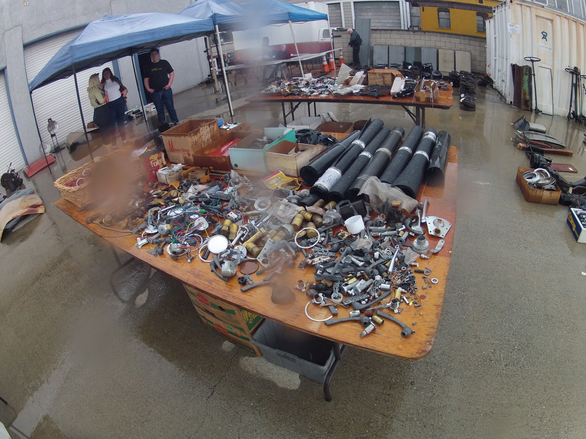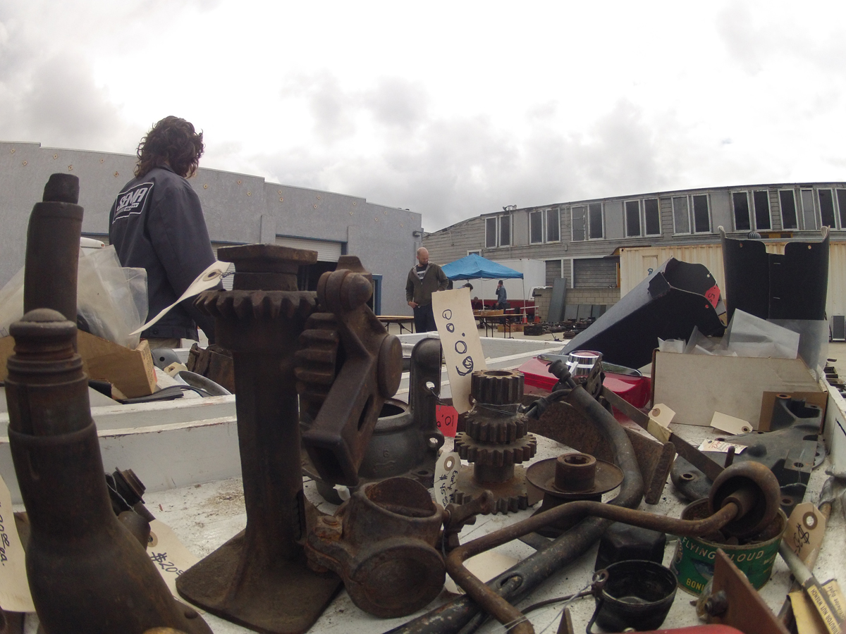 An added benefit this year was an incredible parking lot sale at the historic C.W. Moss building only a mile away from the park. C.W. Moss is an internationally recognized early Ford restoration parts retailer. The patriarch of the family run business; Harold Looney, was there to meet his old time friends who visit come from all around for the show in the park. Just as the breakfast was ending, and the visitors rolled up to C.W. Moss, the clouds decided to let the rain fall. More diehards didn’t mind the rain while shopping for great deals on take-off and New Old Stock Ford parts.