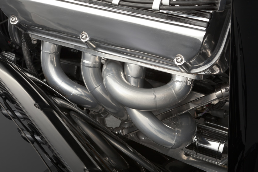 - 1957 Imperial 392 Hemi, Hot Hemi aluminum heads polished, Hilbourn electronic fuel injection with custom milled cover, Joe Hunt Distributer. Built by AES. Rad Rides by Troy Custom pulley system, fan shroud and details, Hot Rod Chassis and Cycle Custom headers.
