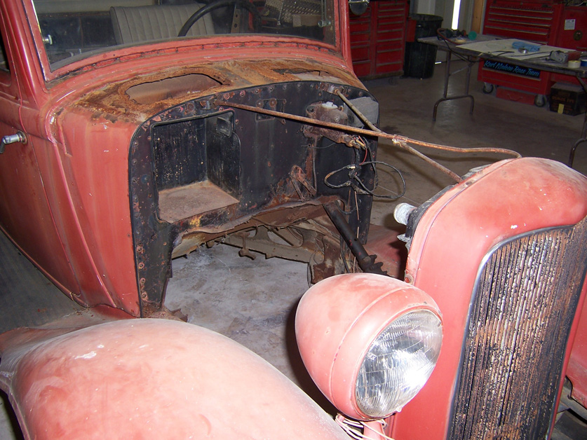 When we got her to the house, Jane and I spent several months trying to decide how the car was going to be refinished. It originally had an Olds Rocket that had long been removed and junked. The original front suspension was well worn past its useful life and the olds rear end that was put in the car back in the late 50’s was also past its prime. All this work along with a 5” channel had been completed in an anonymous hot rodder’s garage in or around 1958!