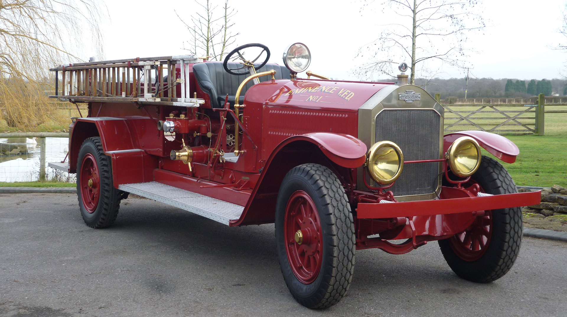 A fire truck offering a legacy that originates from the dawn of motoring, traceable back to the Daimler Motor Company and its Chief Designer Wilhelm Maybach. In 1899 a wealthy admirer of the marque named Emil Jellinek took the first 4 cylinder Daimler to Nice Week Speed Trials and entered under a pseudonym, his daughter’s name Mercedes. Just a year later the Mercedes name was adopted for Daimler cars available in parts of Europe and the US. Again in 1901 after much persuasion by Jellinek a 5.9 litre producing 35hp was readied for Nice Week. The Mercedes 35hp tourer would become the forefather of the modern motorcar, no longer resembling a horseless carriage. In 1902 Maybach would design the Simplex which at the time was light years ahead of the competition and a chassis costing £2200 offered 70mph performance. The Simplex models were uprated for racing and glory followed including winning the Gordon Bennett Cup in 1903 with an engine producing 90hp and setting a new world record in 1905 at Daytona. Little wonder the design was widely copied. The Crane-Simplex Automobile Company in the US began to build similar versions using Mercedes parts.