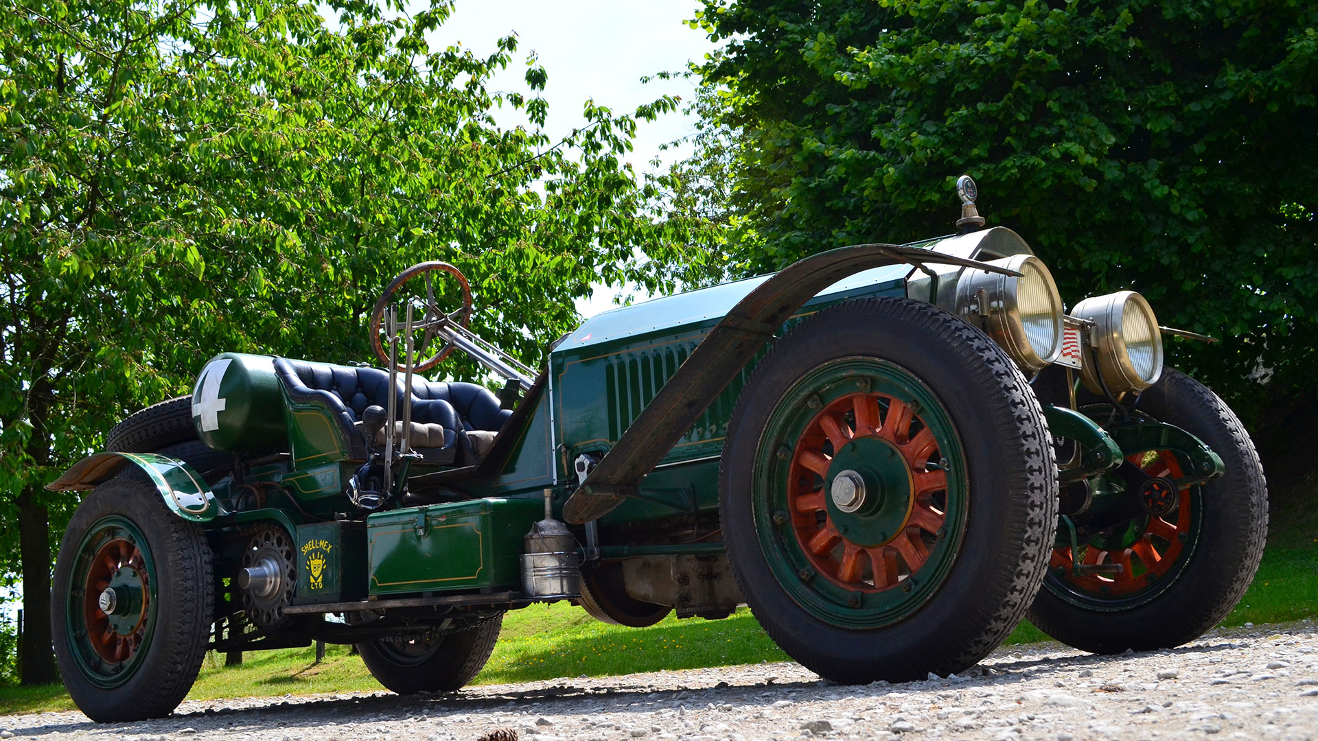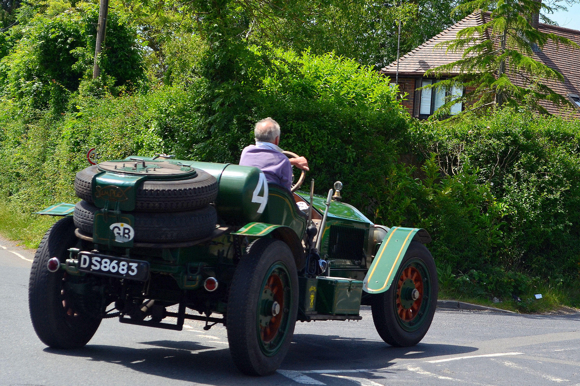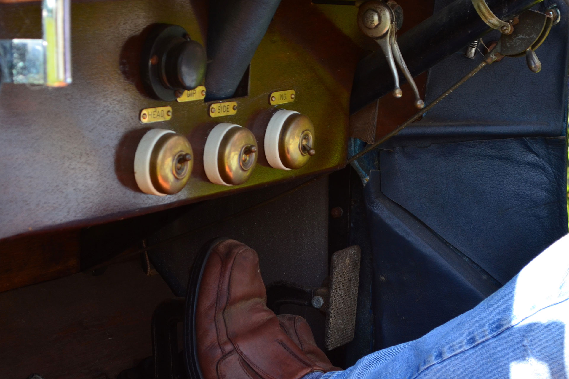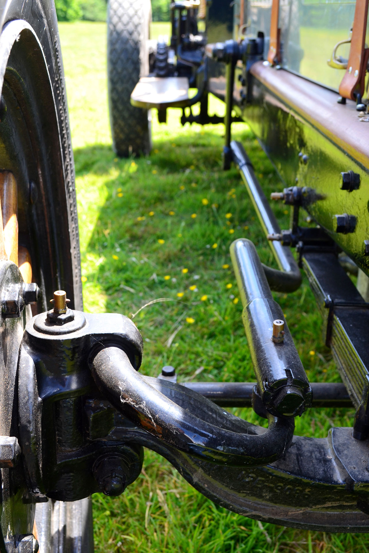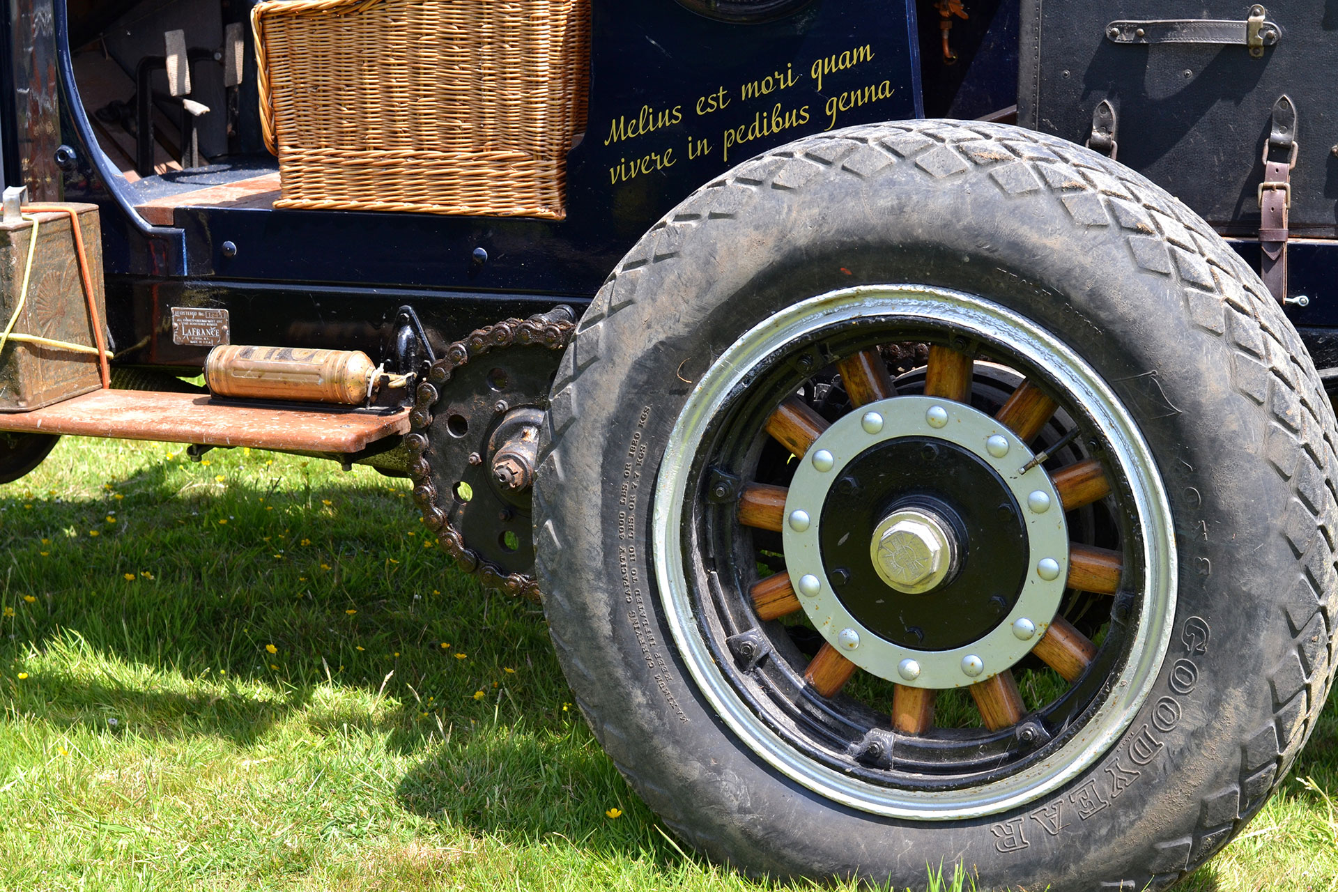 On the road the La France requires a skilled hand to master and control; luckily the owner is more than capable and we not only make progress rapidly but have a turn of speed that surprises me considering it’s of a vintage that warrants a telegram from the queen. Julian is able to muscle the Speedster through narrow country lanes with confidence and at one point my modern turbo diesel needed ‘foot to the floor’ to keep pace. It is however from the passenger seat where it really impresses, with constant input from the driver into the huge steering wheel, timing adjustments, right hand gear change and my biggest fear a central throttle pedal. One incorrect stab on that control and several tons of rolling thunder could easily cause mass destruction but my pilot was in total command; it was like watching someone handle the world’s biggest Rottweiler on a very short leash. Take off is all or nothing and the Hickory Wood wheels spin easily, especially in the wet and the three speed crash box is worked hard but once into top the La France hitched up her ‘breeches’ and just pulled relentlessly. The vibrations are immense and the sense of speed heightened, being high up with no screen for protection makes a blast in this Speedster more exhilarating than anything Disney has to offer. Edwardian race drivers would be expected to handle such machines at insane speeds, for many hours, over rough terrain; little surprise there was so many accidents. A thrill and a privilege to be aboard such a vehicle; my thanks must go to Julian for offering the opportunity to bring these magnificent machines to a wider audience.