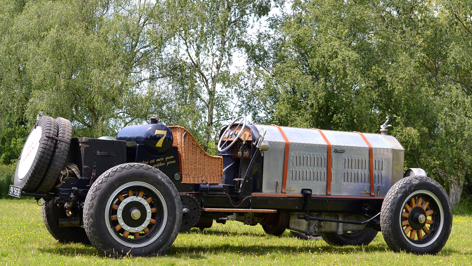 It matters not your personal taste in motor vehicles, some machines just rock you down to your boots. This is true of the American La France Type 12 Speedster. If the sheer size (17ft long) doesn’t affect you, the details will certainly make you think. A straight six, 125bhp 14.5 litre engine with 18 spark plugs, 3 per cylinder with 2 coils feeding 12 plugs and the other 6 running to a magneto. The pistons are 5 1/2 inches in diameter thus you are doing well at 8mpg. The La France had no front breaks and the rears are contracting bands, offering a real challenge when bringing a 3.5 ton vehicle to a halt. The handbrake is often used when needed but prone to lock the wheels if over applied, something to consider at 90mph which is perfectly achievable once overdosed on ‘brave pills’; all this from 1914.