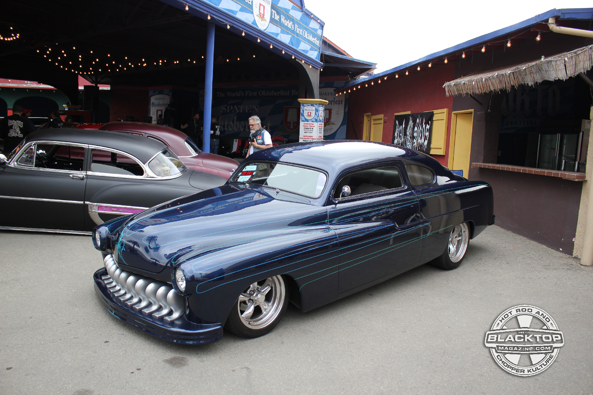 The show in Building Four is important to most. However, I dig seeing people who I know busted some knuckles working on their own cars and actually driving them! For that I go to all the other buildings and the drive-in outdoor show on Saturday. In a more personal take, I am very proud of my fellow Mercifuls; Jack and Gordon for having their cars in the Suede Palace. First for any member of the club. Gordon’s lavender ’58 Cadillac with a heavy silver flake roof captured the attention of many at the show. Jack’s custom green ’57 Pontiac Star Chief is as traditional as they get for ’60’s mild customs. Jack gave his “Awe Shucks” as he accepted the trophy for Best Custom.