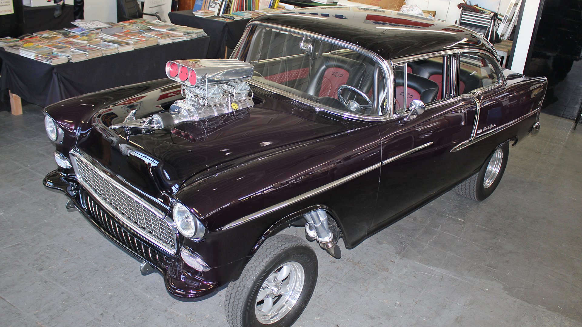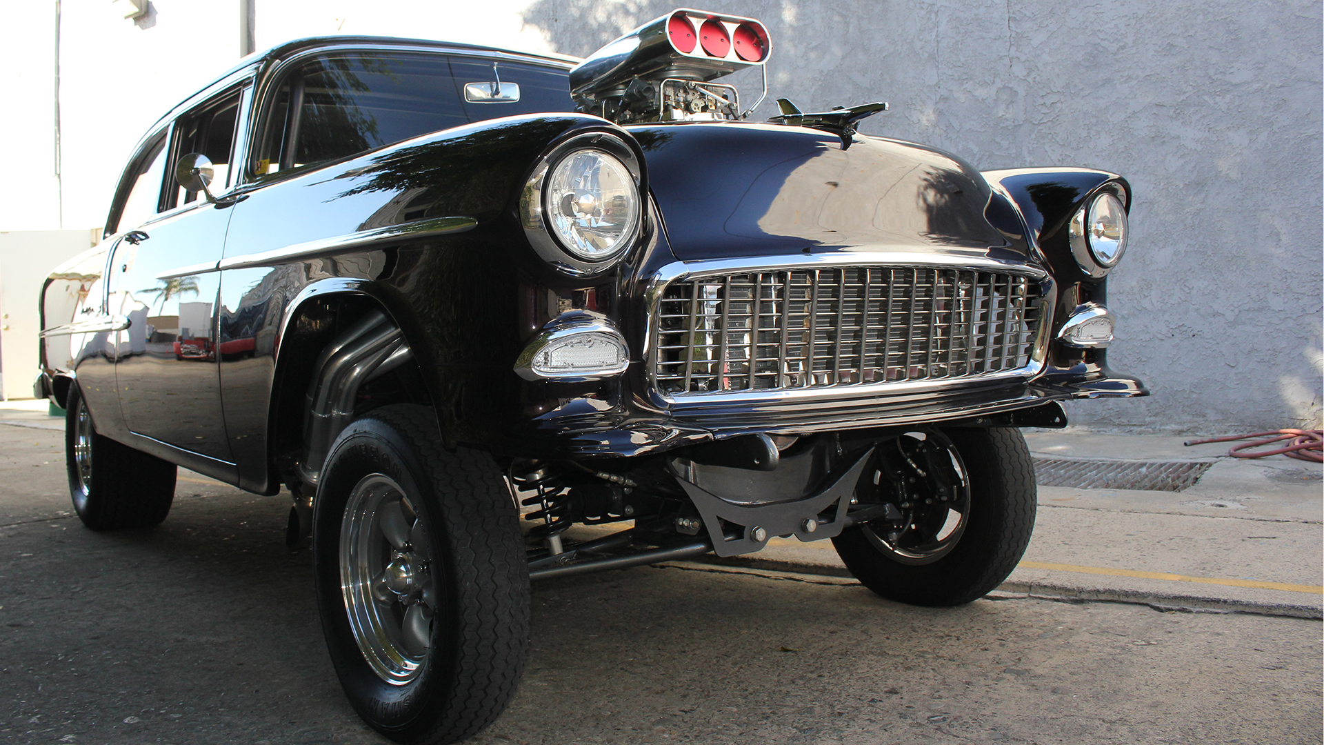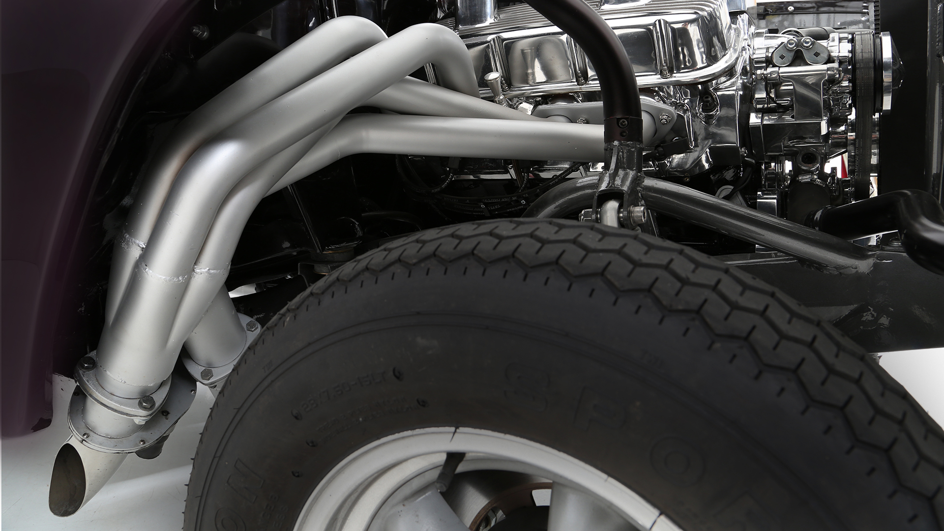 Ron and Lucy Moyer tasked a local hot rod shop to build a custom gasser that had all the looks of the classic dragster, however it must have easy to drive features of a modern car. In-fact Lucy a demure “little 67 year old lady from Yorba Linda” drives the car. The car features a custom Indy inspired front suspension in lieu of the usual straight axle. In the rear cantilevered shocks replace the ladder bars and leaf springs of the period correct rear end. Bernt sprayed and polished the Brandywine paint to a glass finish. Ron Mangus stitched up the comfy interior.