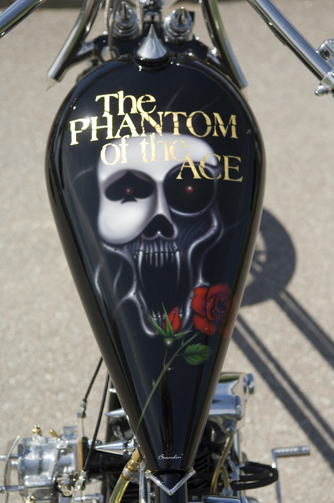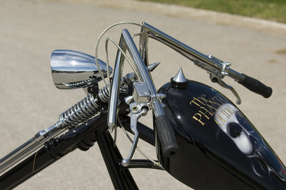 Everything started when I saw Phantom of the Opera on TV. A bit later, I went to the theater and saw Phantom of the Opera live. Now, I went on with the building plans for a new chopper so the idea of The Phantom was running in my head,