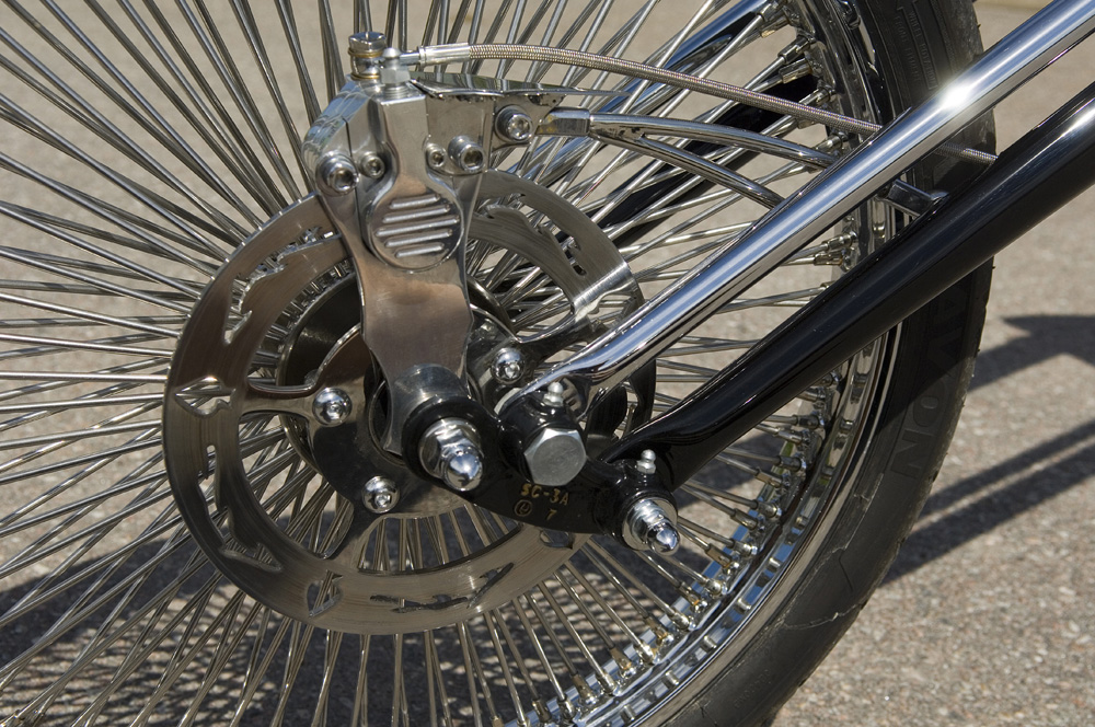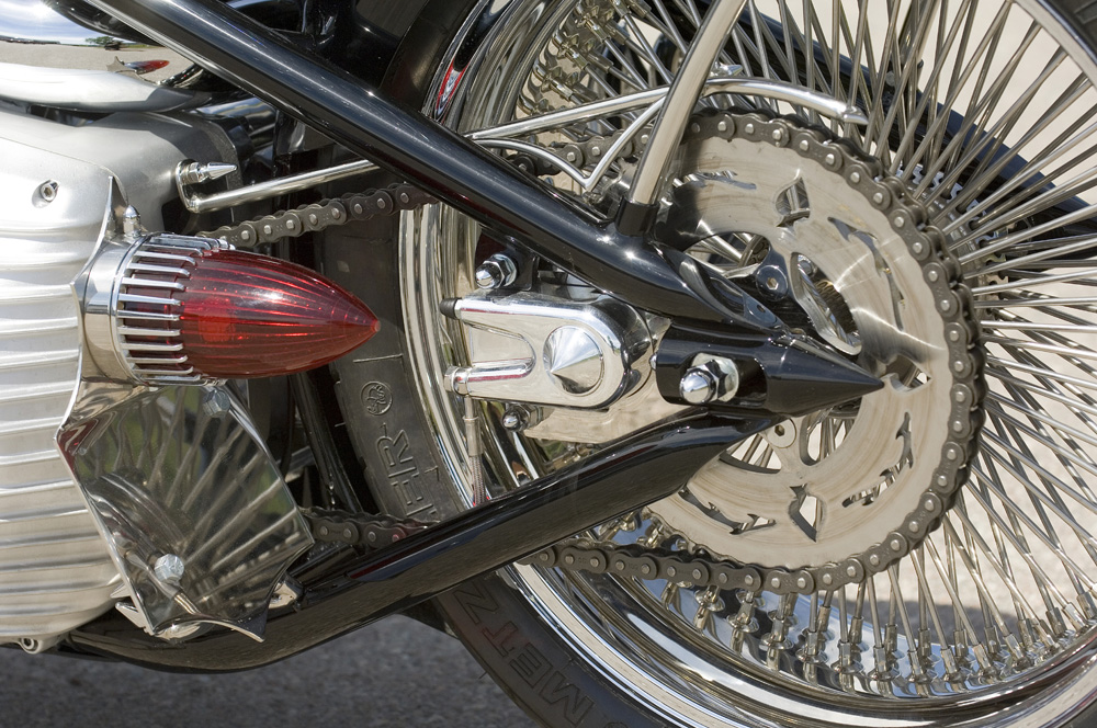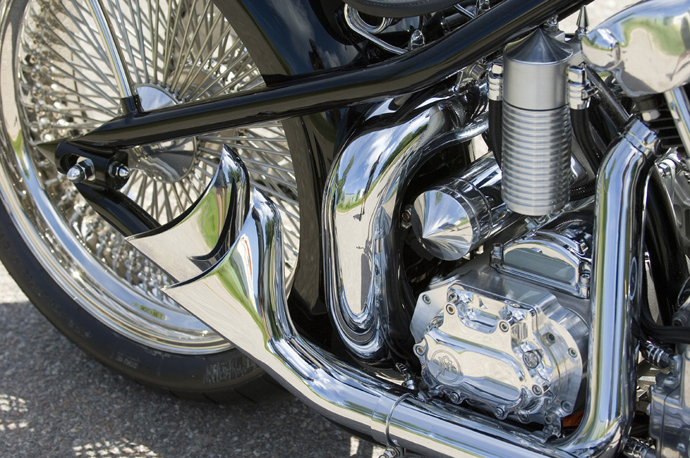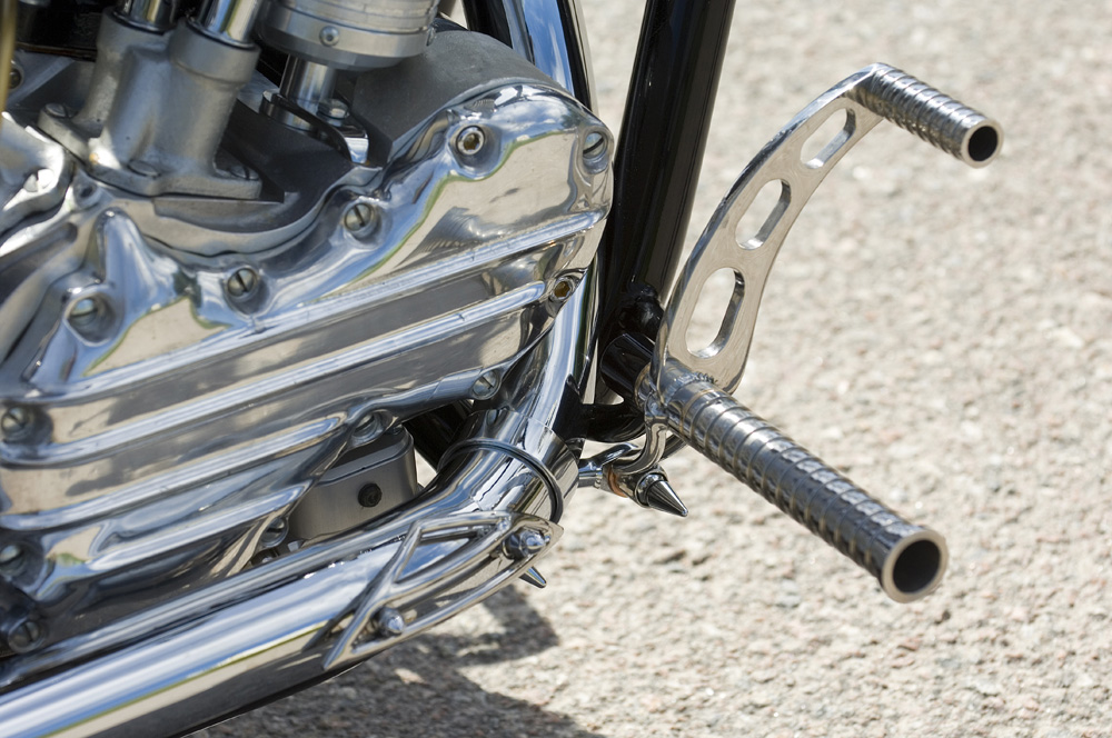 I was talking to a friend who painted most of the bikes for me at the time. He turned to my idea just when it got started. He drew up a frame, that was a bit too long in the back so we put it in the jig and made it a bit shorter. Then I took a rear fender, a tank from Jesse James which I modified. The oil tank was made of pipe bends which was actually intended for a styling bar to my Chevy pickup. All mounts and parts around the bike is handcrafted by me. I worked hard that winter and when spring approached, there was a lot left to do, so it was a lot of nights on the job.