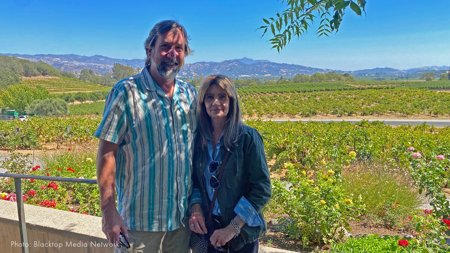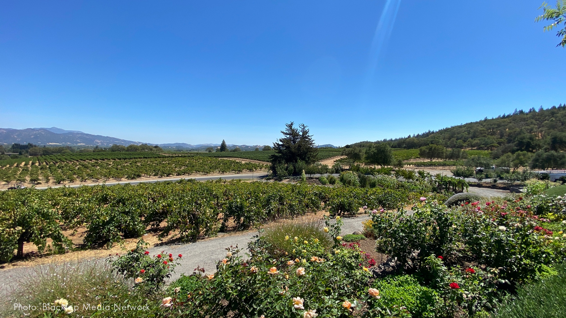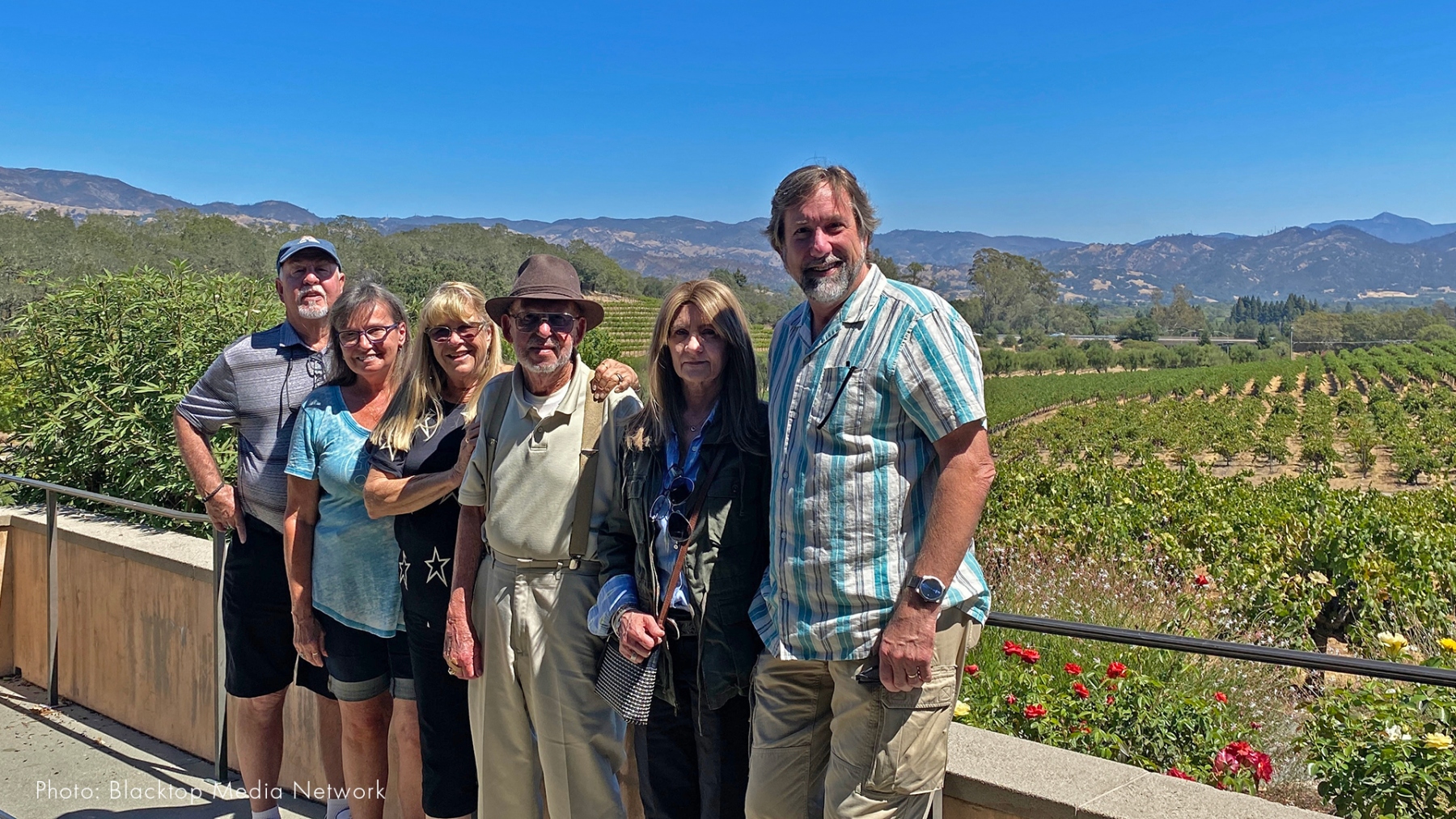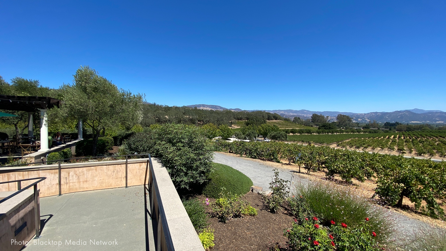I am here on vacation. Tracy and I are spending a week in the rolling oak tree spotted blonde hillsides wine country to simply get away. As we roll along the backroads of Napa and Sonoma Counties staccato rows of grapevines fill the valleys and gently roll up the base of the hills. Half the time we spent with my aunts, uncles, and cousins in Santa Rosa and the other half Tracy and I explored the small towns of Yountville, St. Helena, Sonoma and Napa. We are here at this winery because my Auntie Loraine and Uncle John are members invited us to join them and my Uncle Doug and Aunt Becky for some lunch and wine tasting. A beautiful half chicken was the main course just after a goat cheese and fig appetizer and of course a taste of Pinot Noir. More wine tasting on another patio before we explored the grounds.