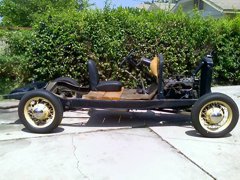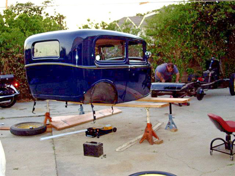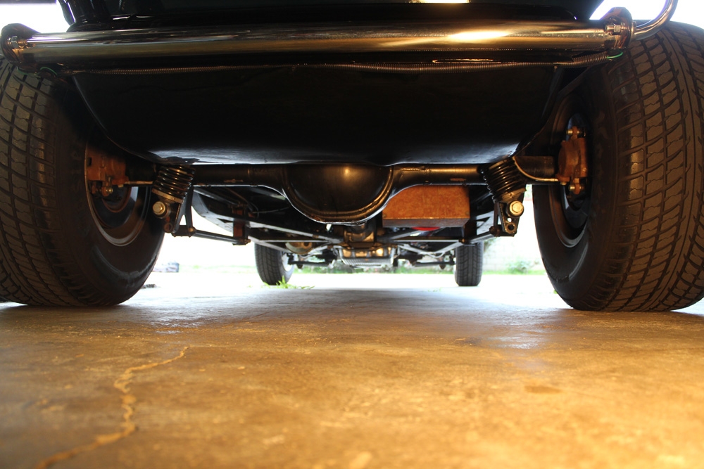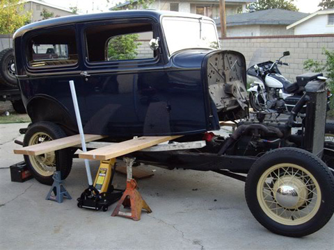 They raised the body (un-marred) from the frame with only a pair of 2×10 sticks of lumber and 4 jack stands. “Experts” told them after the fact that this isn’t possible. They had the photos to prove it. Sometimes naiveté has its benefits. They sold the frame right out from under the body with its running flathead 4 and stock wheels. In the same fashion they dropped the body on a fully equipped TCI chassis which they had brush painted with POR 15.